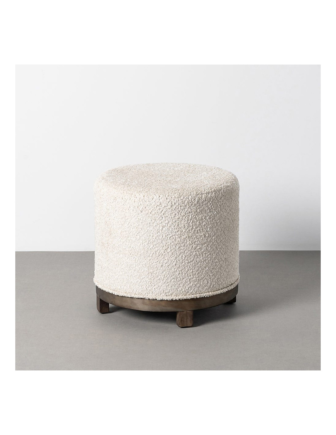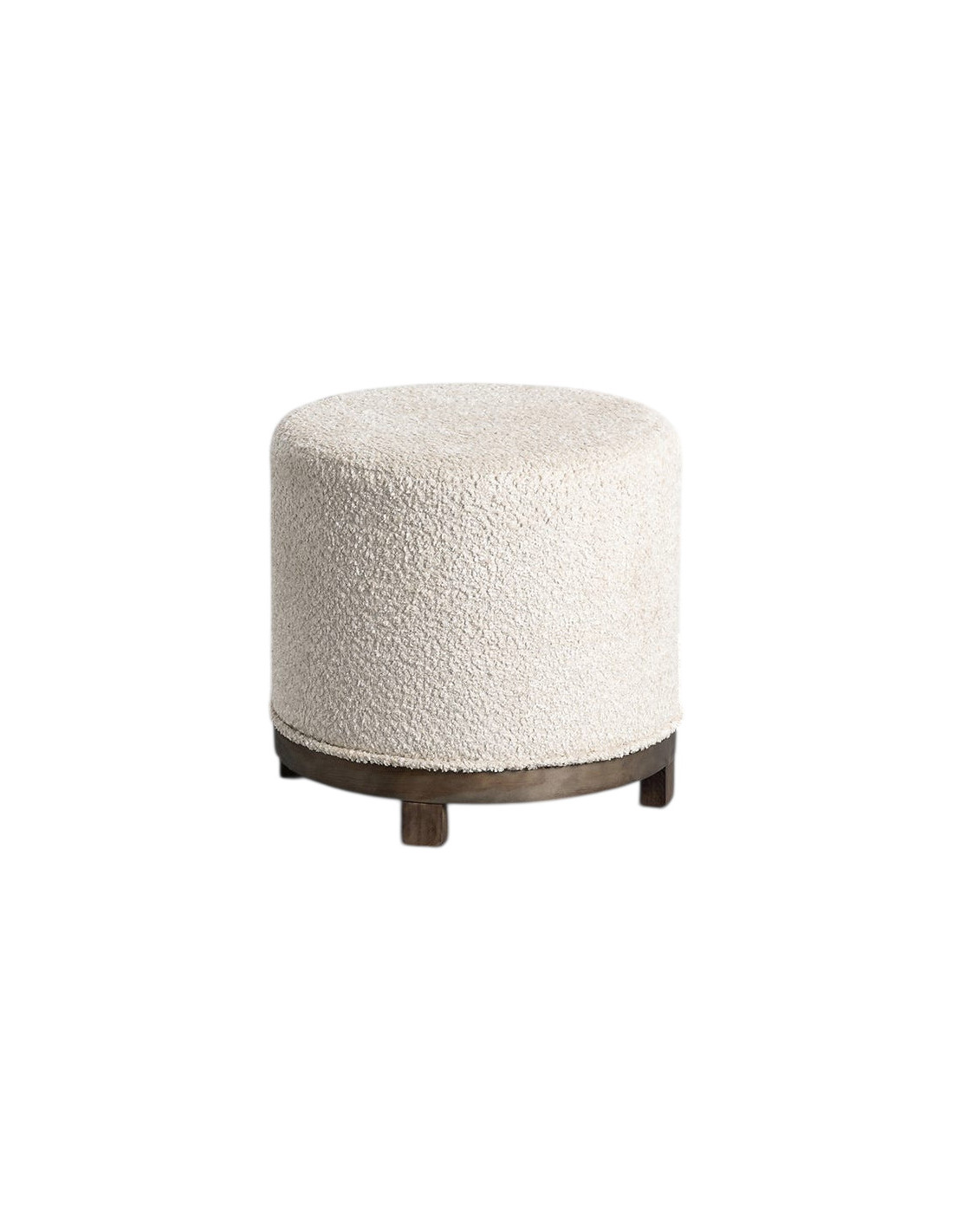 Pouf pivotant moderne chic bouclette Rond 50 cm Tissu Blanc crème Bouclé Bois MDF Marron foncé Loopa