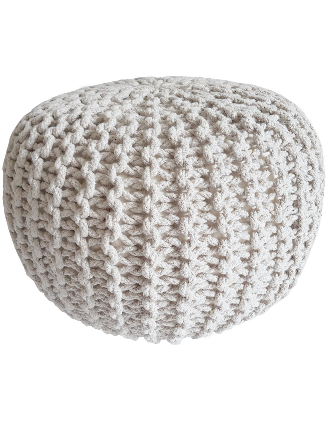 Pouf Tricot Rond 45 cm en Coton recyclé Blanc Lulu