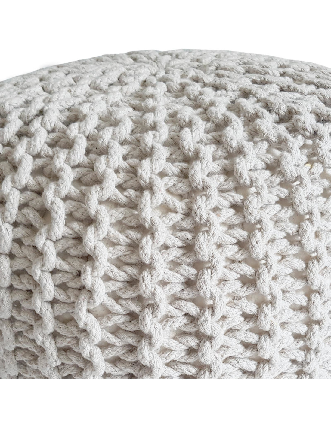 Pouf tricot rond Ø45 cm coton recyclé beige Lulu