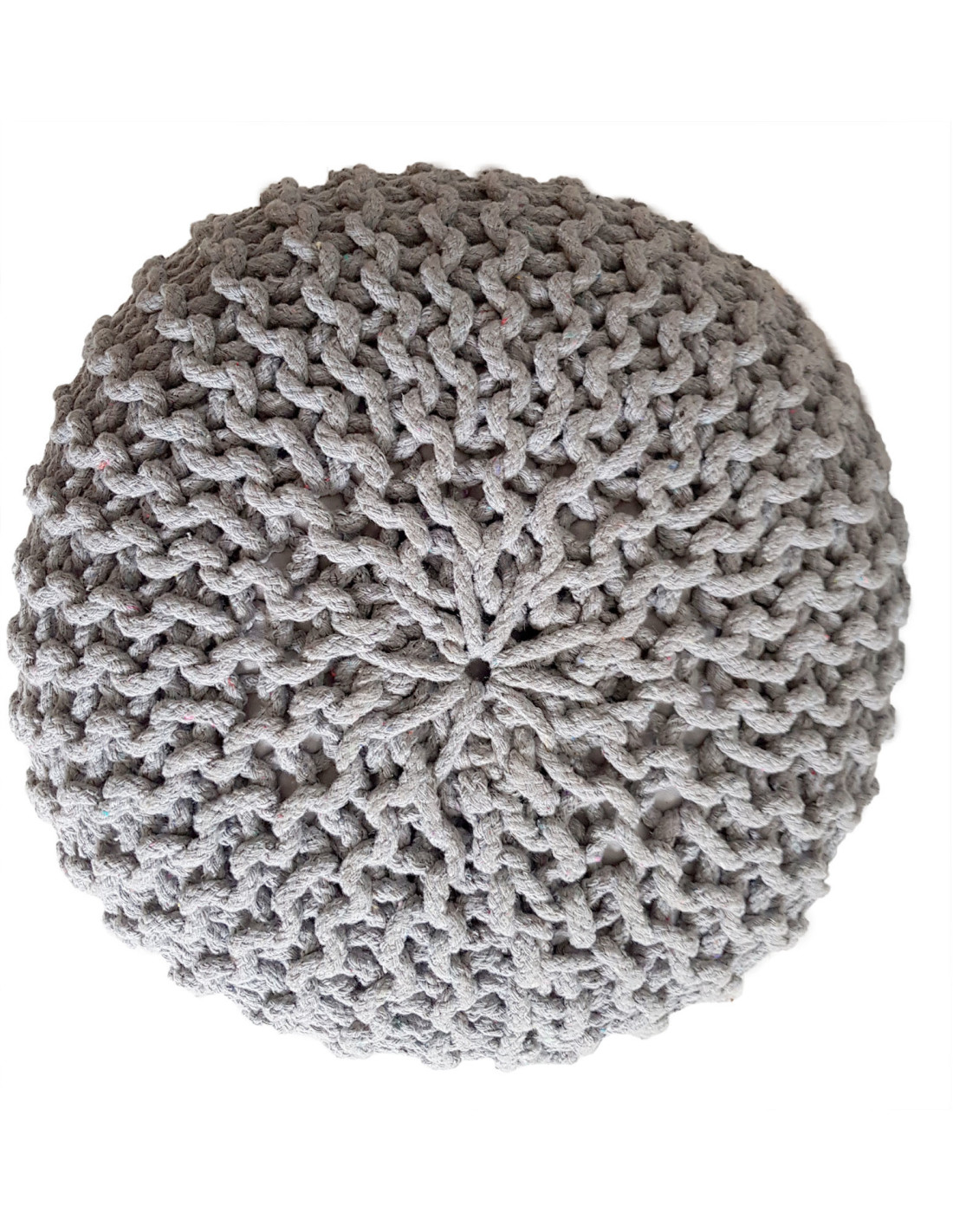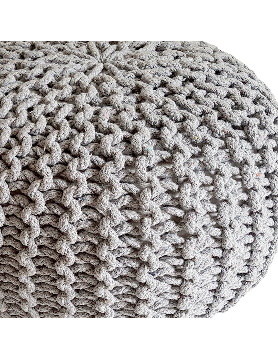Pouf Tricot Rond 45 cm en Coton recyclé Gris clair Lulu