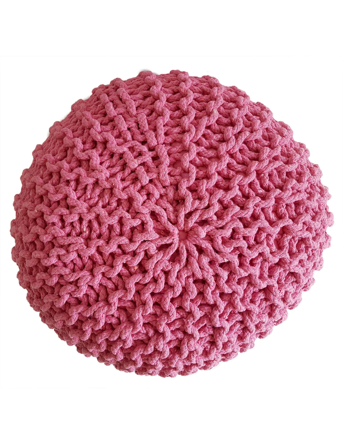 Pouf Tricot Rond 45 cm en Coton recyclé Rose Lulu