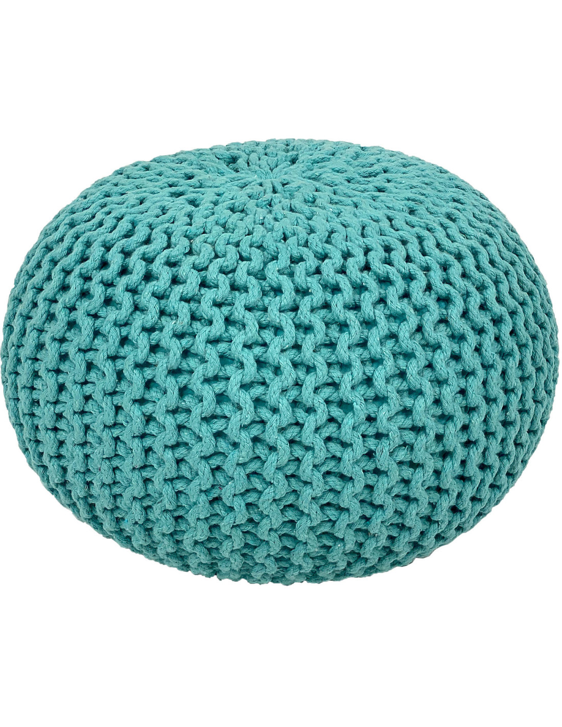 Pouf tricot rond Ø45 cm coton recyclé bleu Lulu