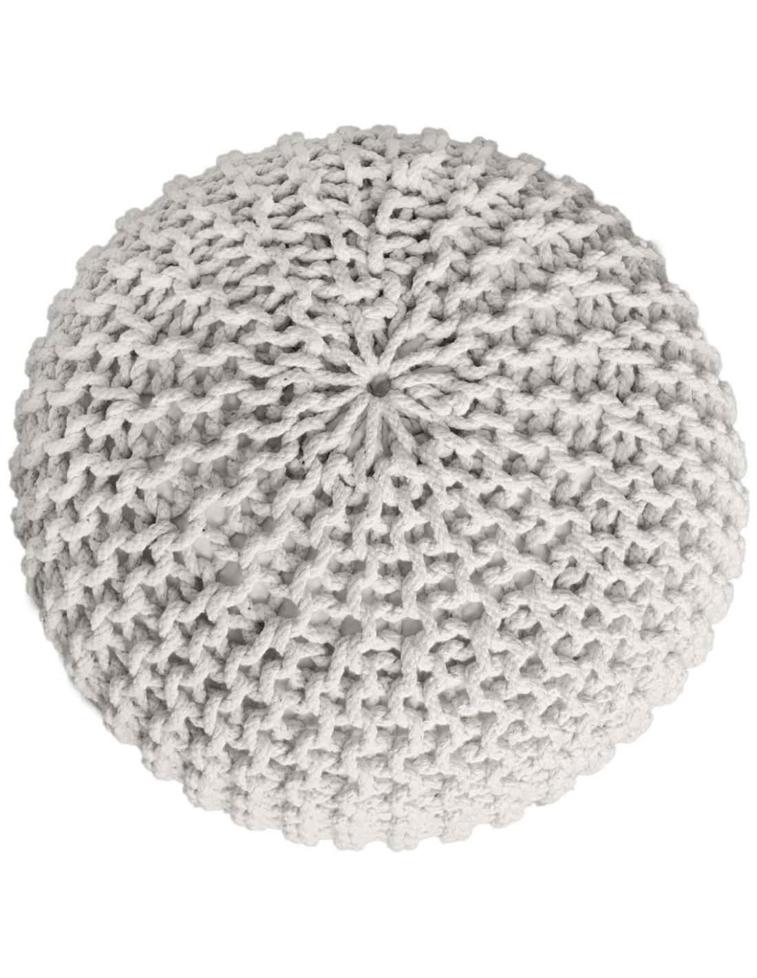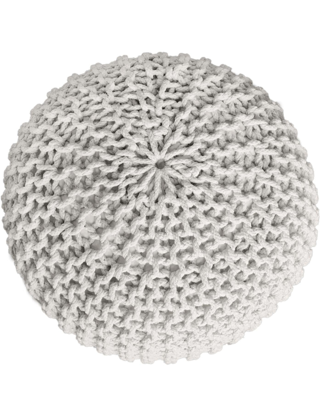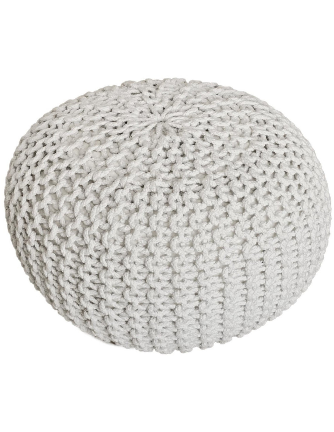 Pouf Tricot Rond 55 cm en Coton recyclé Blanc Lulu