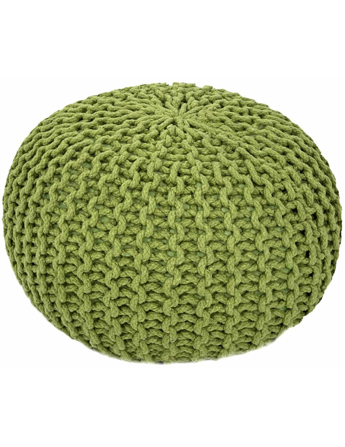 Pouf Tricot Rond 55 cm en Coton recyclé Vert fluo Lulu - 1