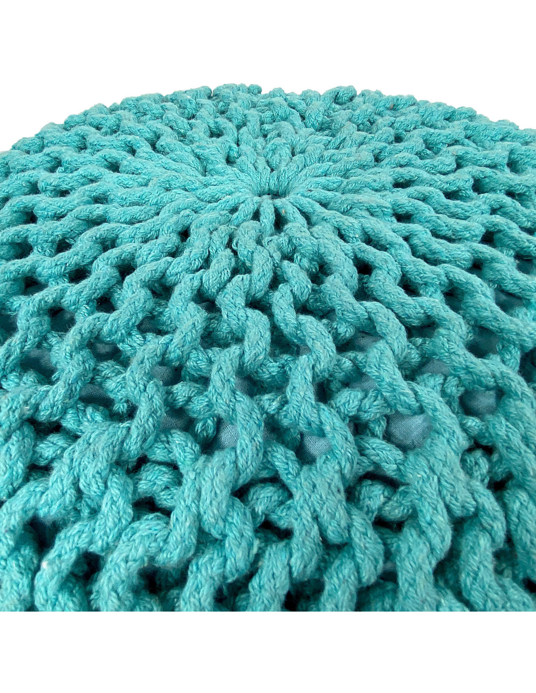 Pouf Tricot Rond 55 cm en Coton recyclé Vert menthe Lulu - 7