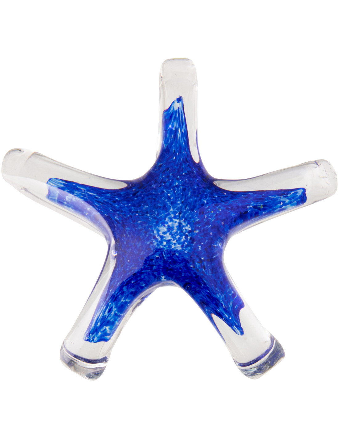 Une étoile de mer revisitée en verre, entre transparence cristalline et éclat bleu profond.
