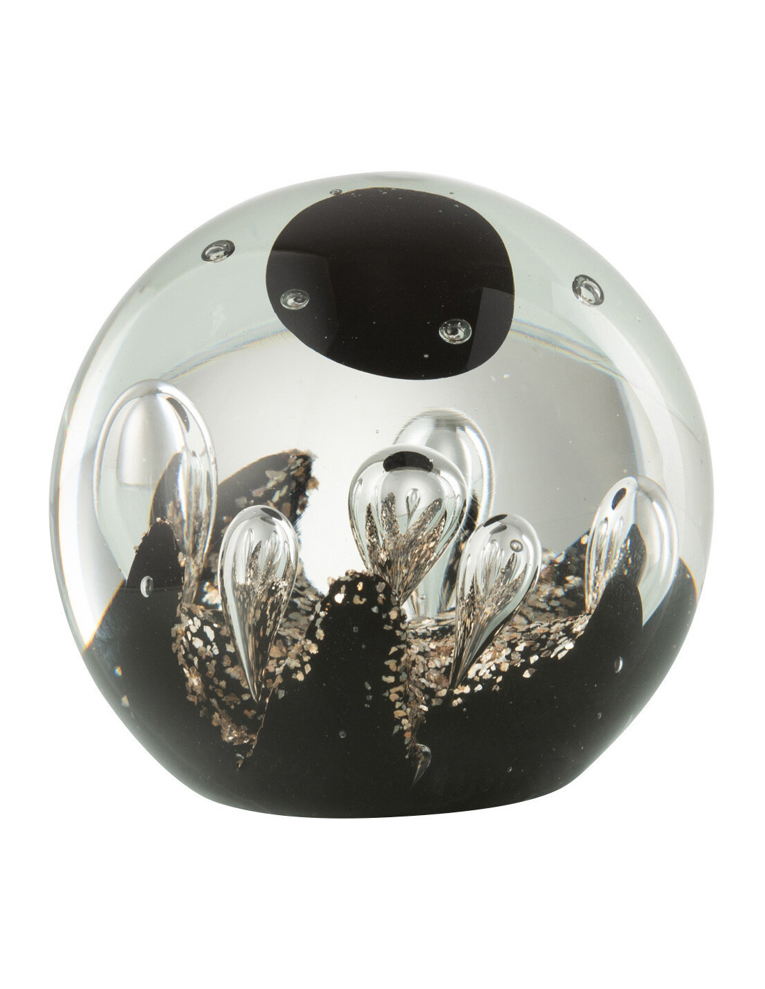 Presse papier original Boule 8 cm en Verre Transparent Noir Doré Magic - 1