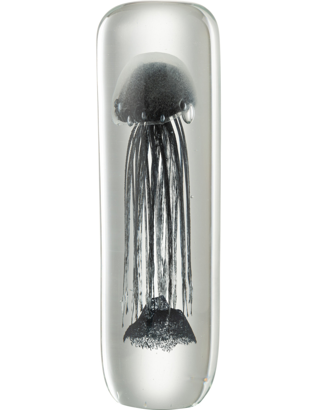 Presse papier original cylindrique XL Méduse Hauteur 29 cm en Verre Transparent Noir Xavellia