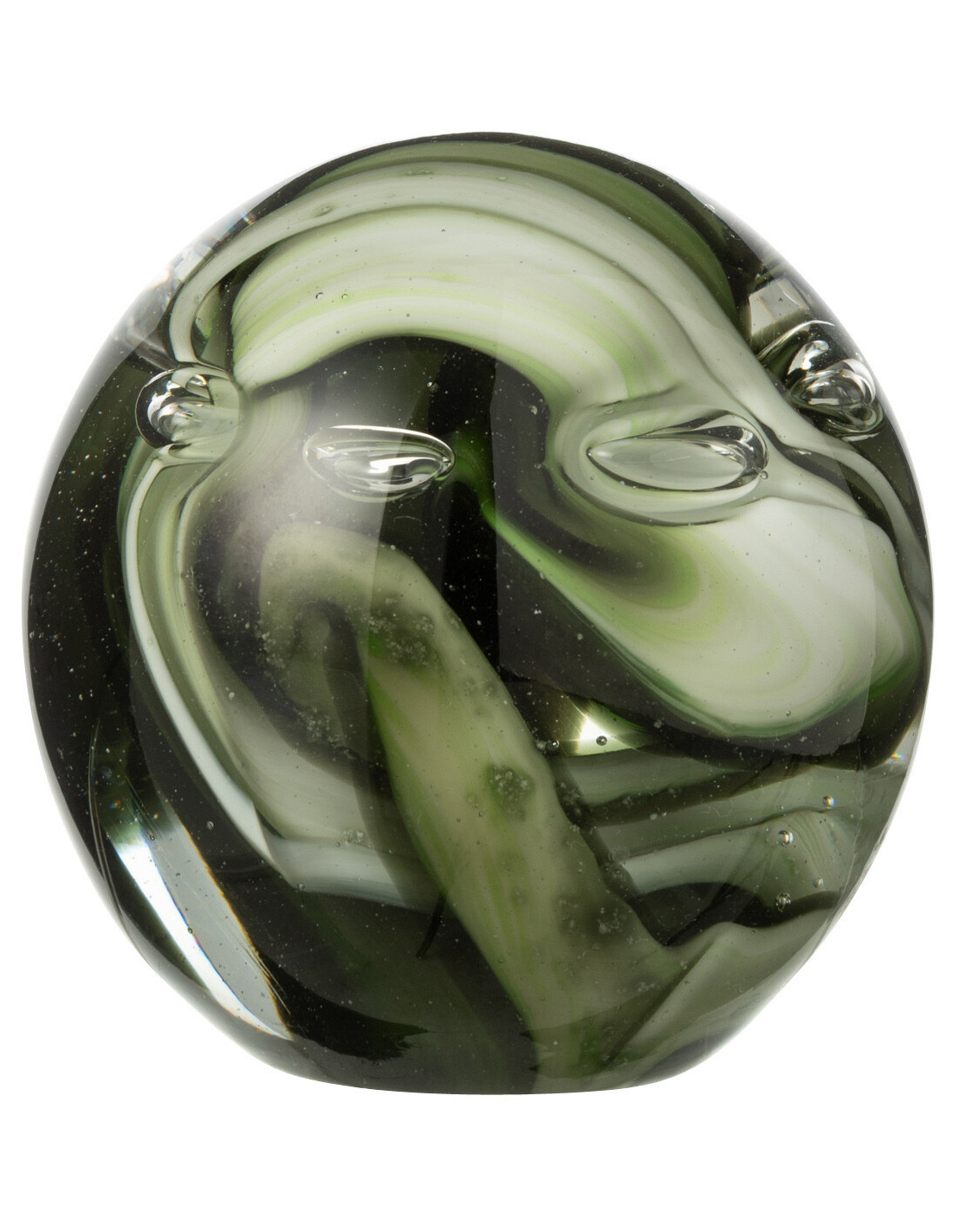 Presse papier sulfure moderne Rond 8 cm en Verre Transparent Vert Noir Tornado
