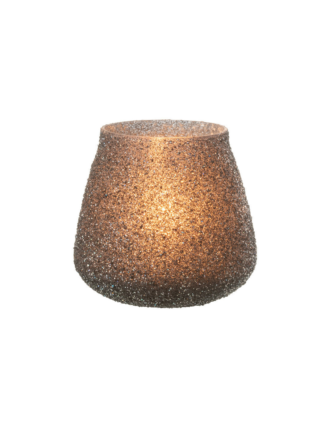 QUARK - Photophore en verre teinté mauve avec paillettes 9 cm