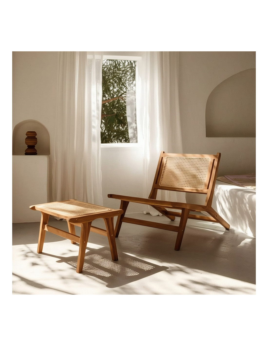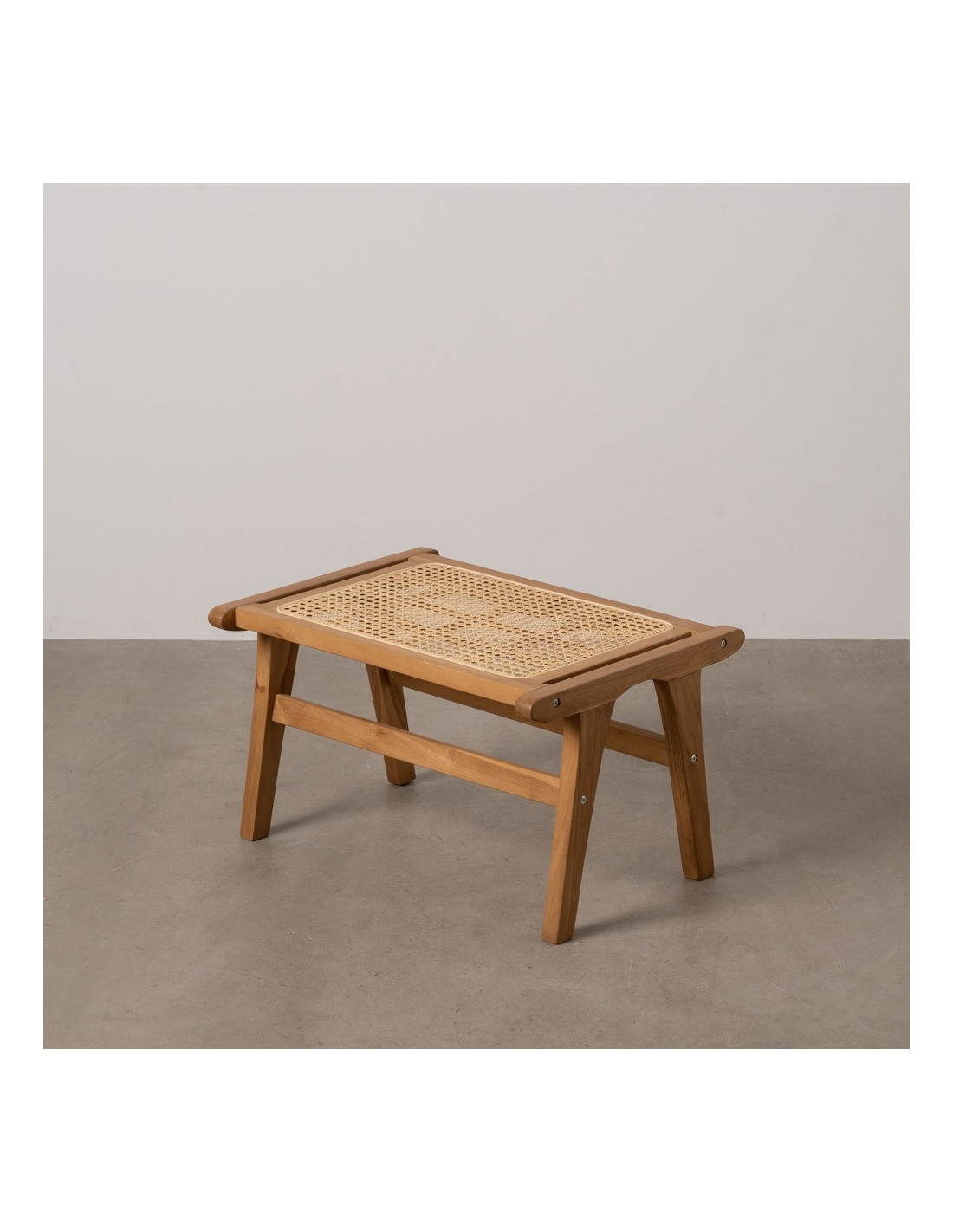Repose-pieds moderne en Bois de teck Rotin Naturel Cannage Bayo - 1