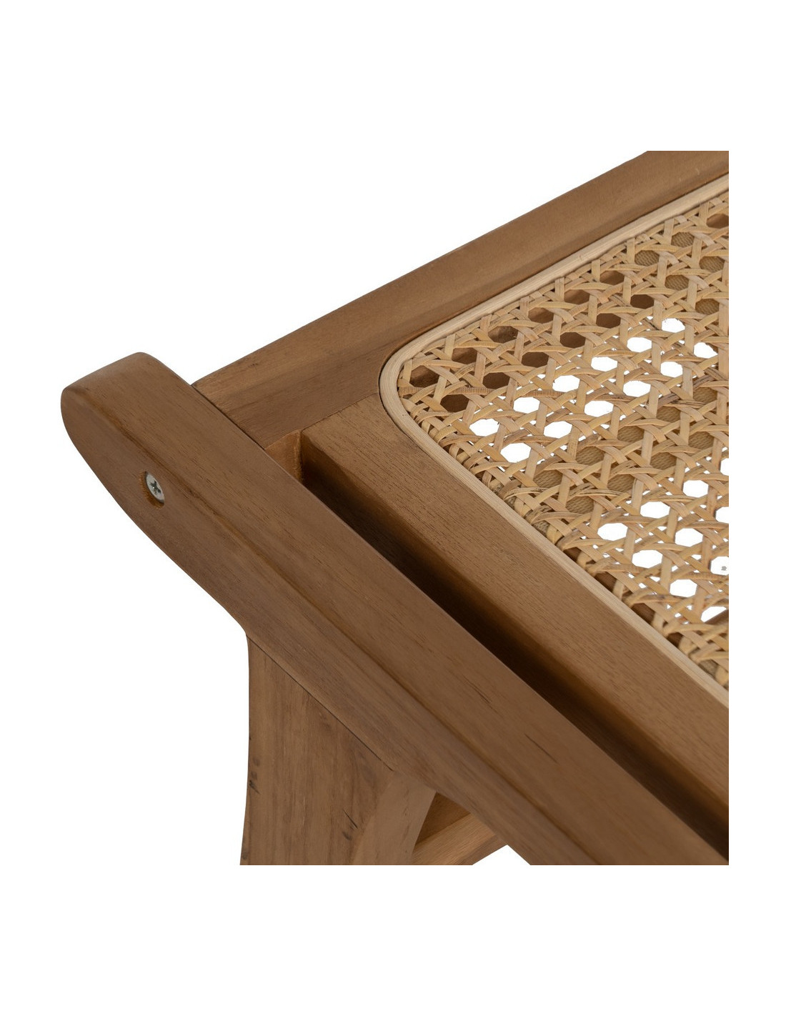 Repose-pieds moderne en Bois de teck Rotin Naturel Cannage Bayo - 7