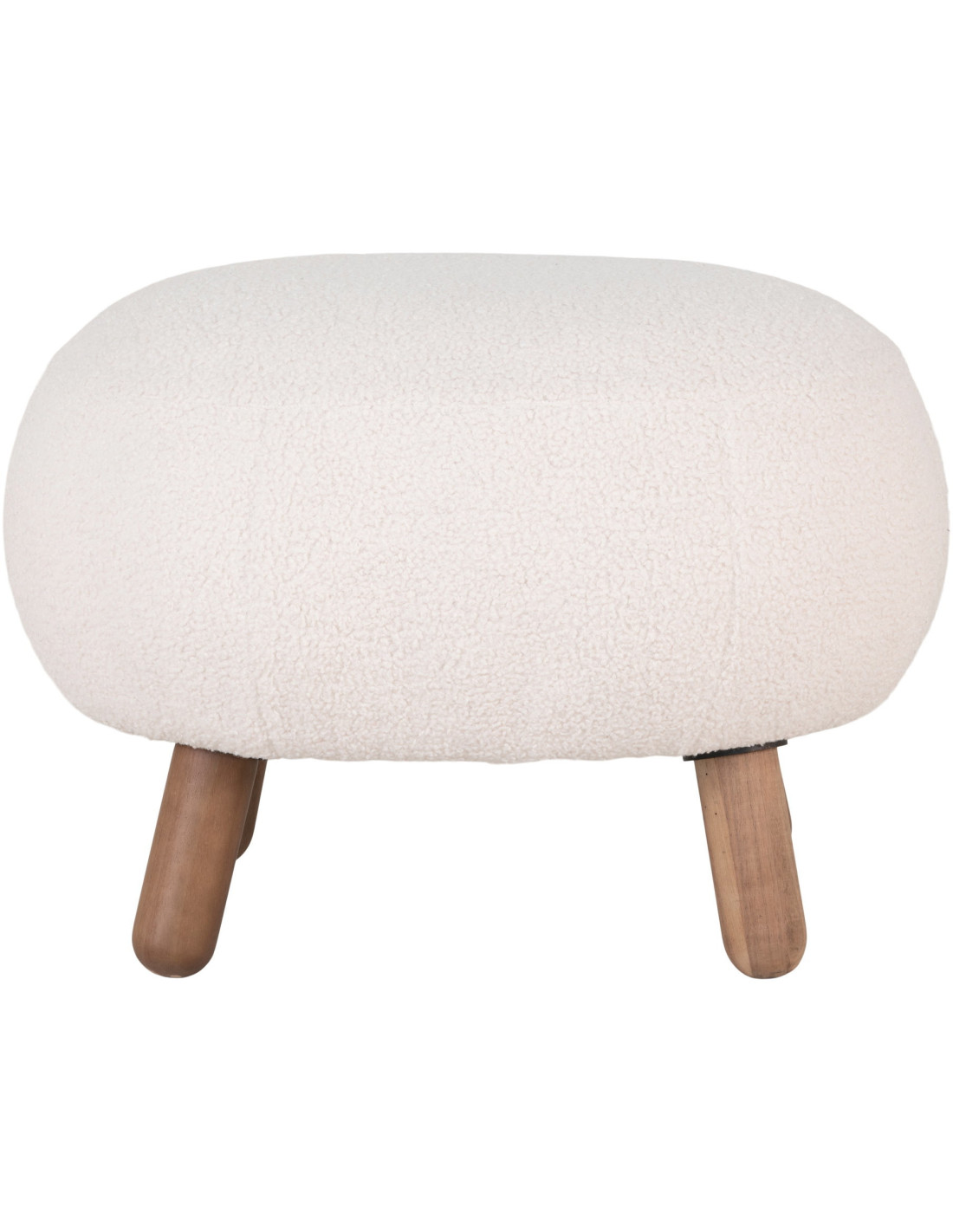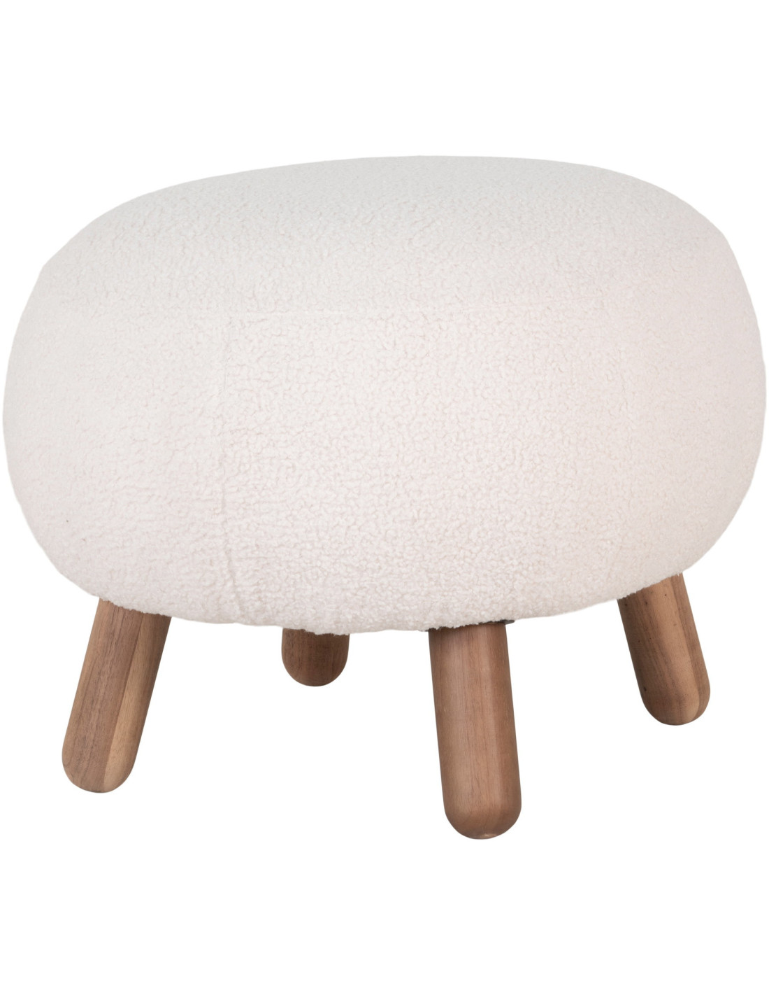 Repose pieds original Bouclette Tissu Blanc Bouclé Bois d'hévéa Marron Savona