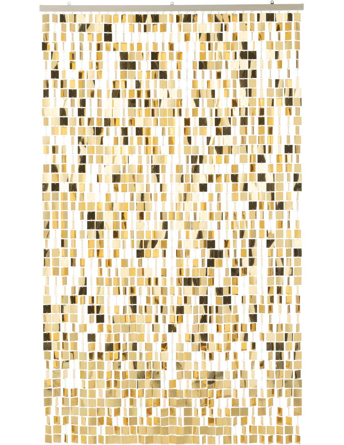 Rideau de porte déco Carrés 120x200 en PVC Doré Brillant Disco - 1