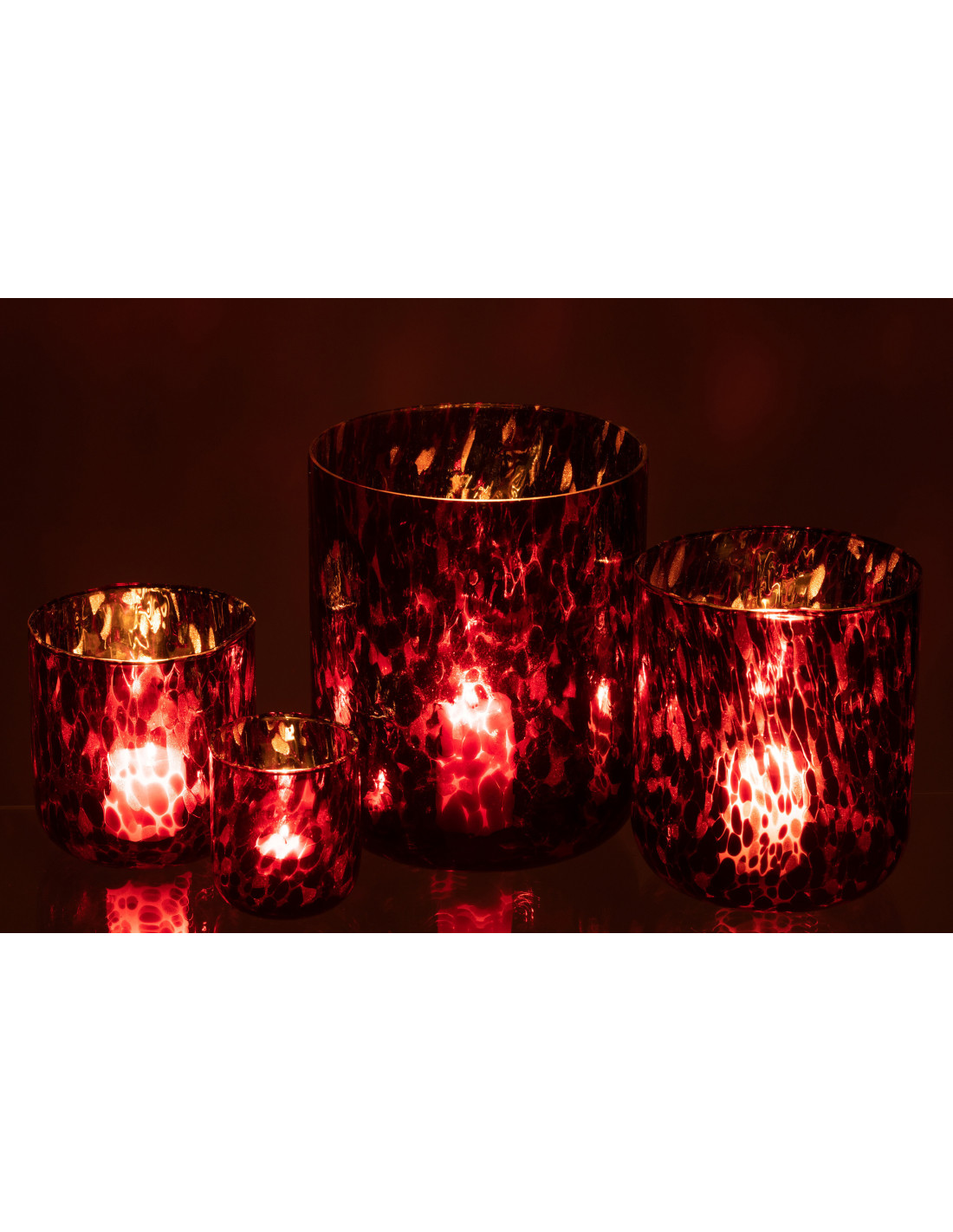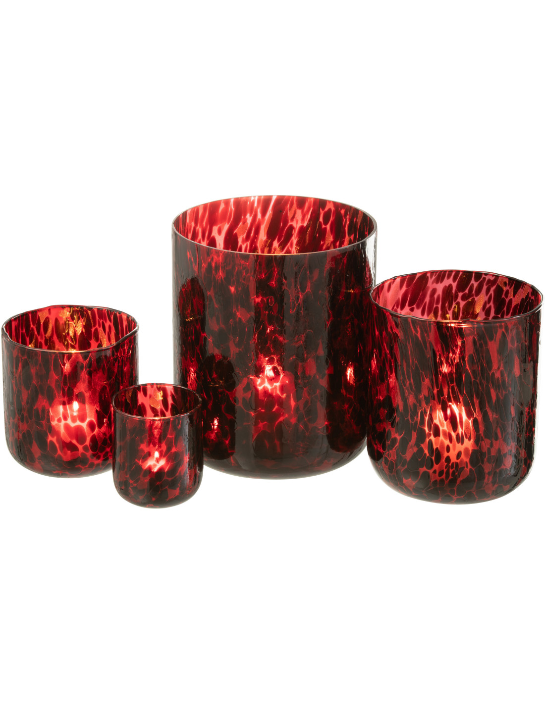 RUBIS - Photophore XL rouge taches noires en verre H25 cm