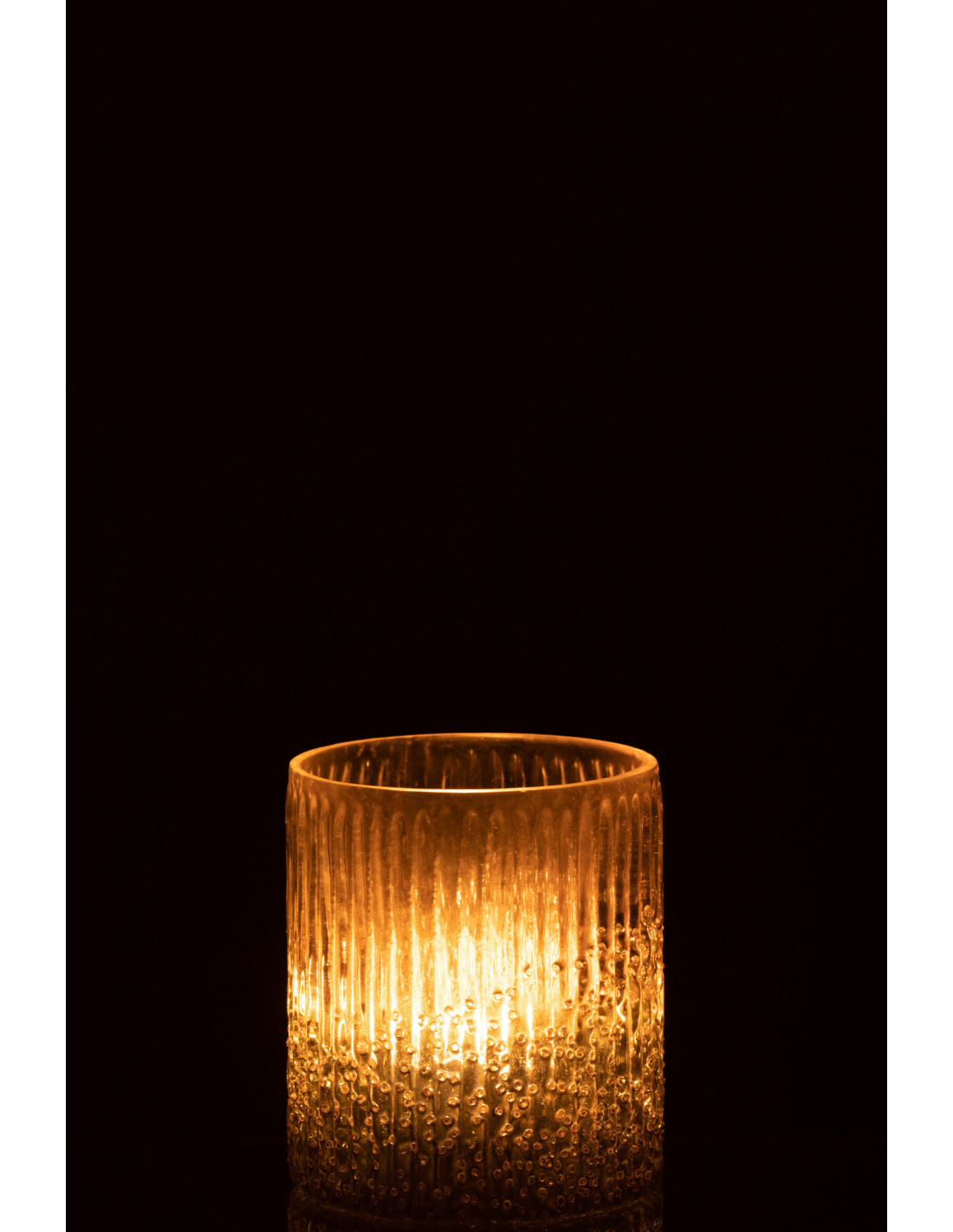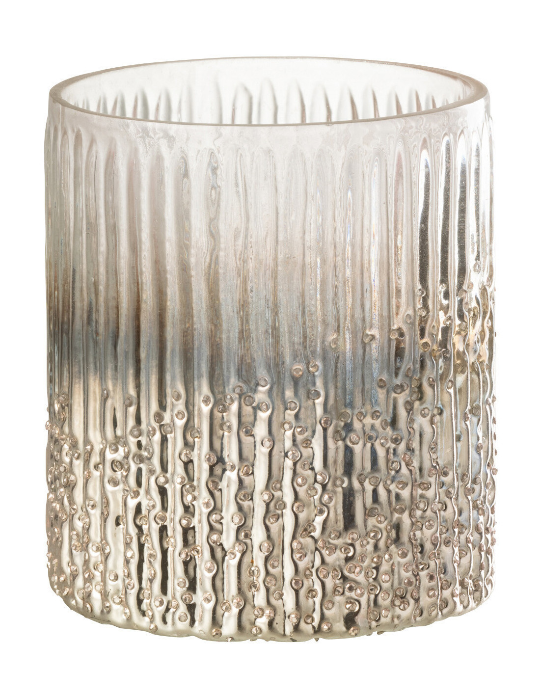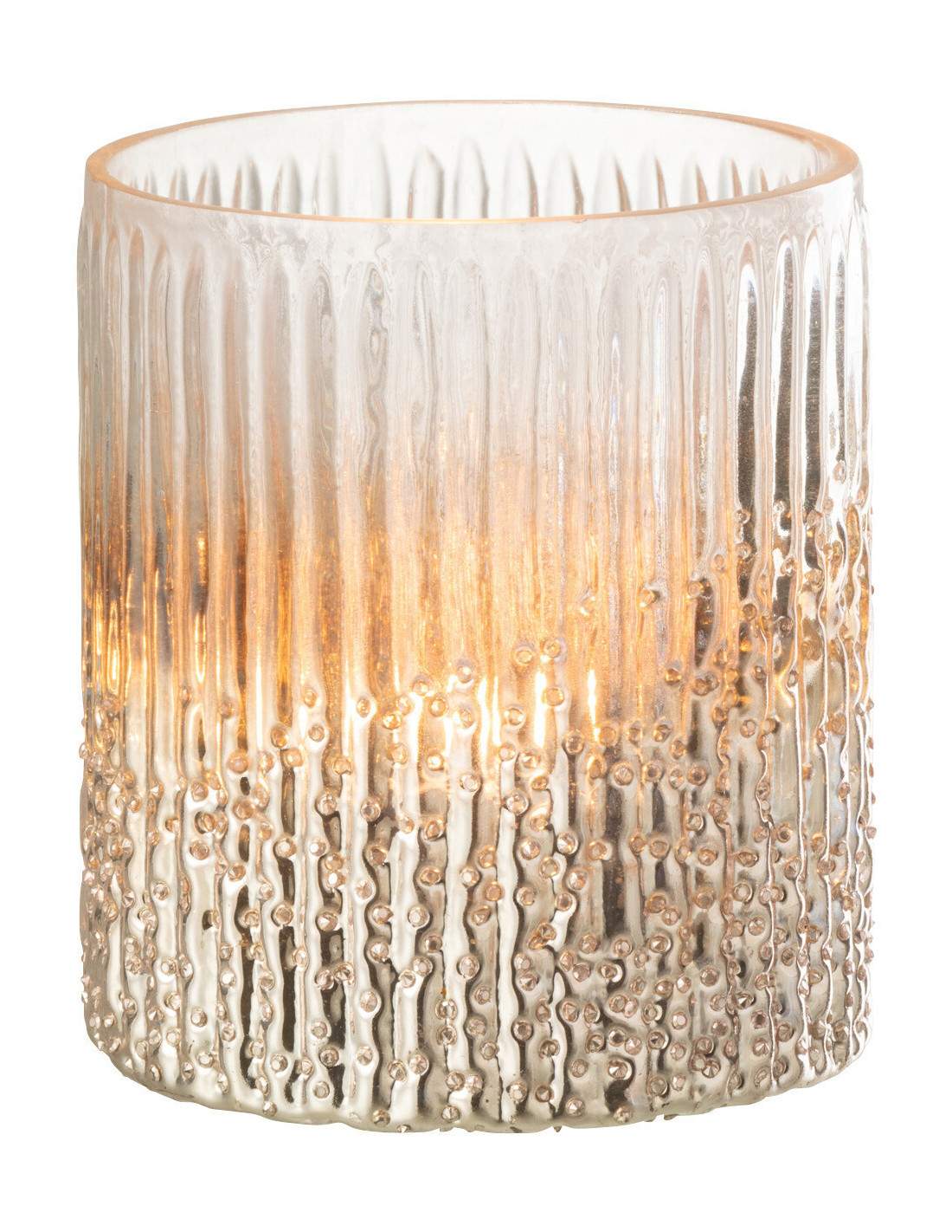 RYLAN - Photophore rose et argenté en verre côtelé 10x12