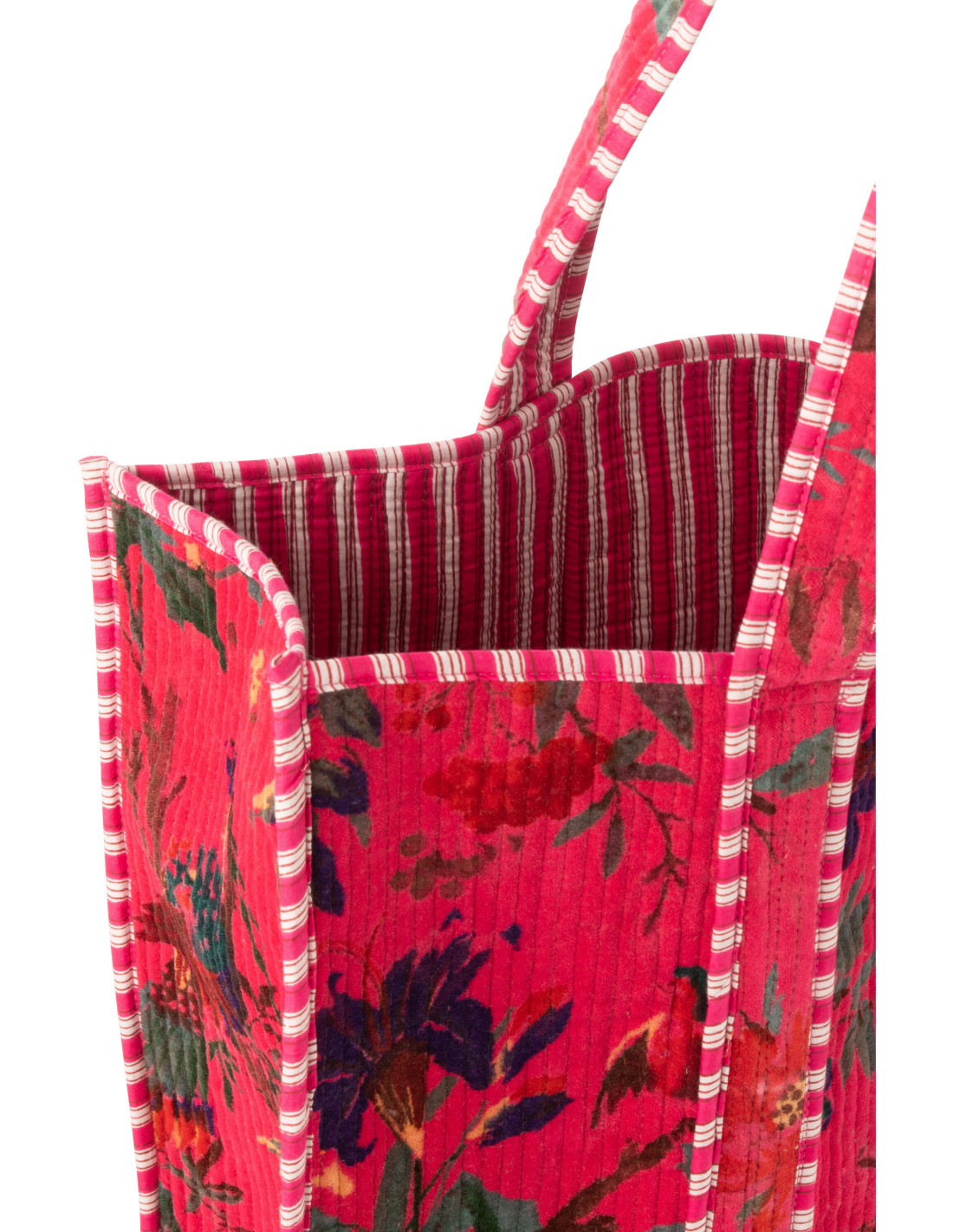 Sac Cabas africain 2 anses 45 cm en Velours de coton Rose Motif oiseaux et fleurs Zyvo - 1