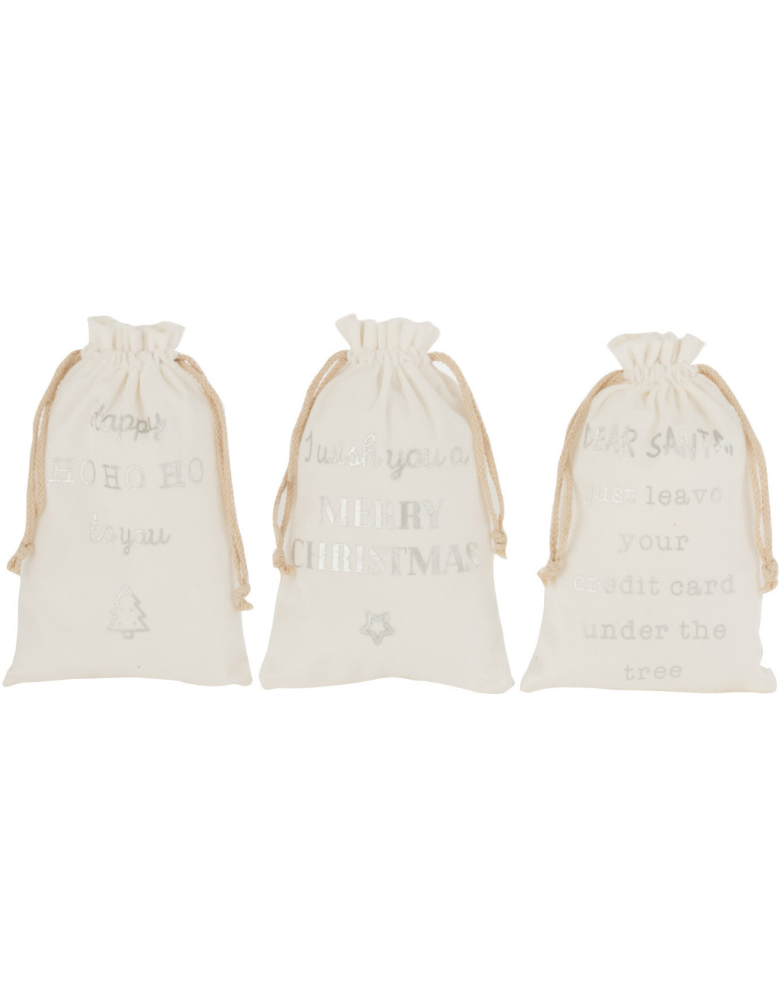 Sac Cadeaux de Noël Anglais 30 cm en Polyester Blanc Argenté Effet velours (Lot de 3)