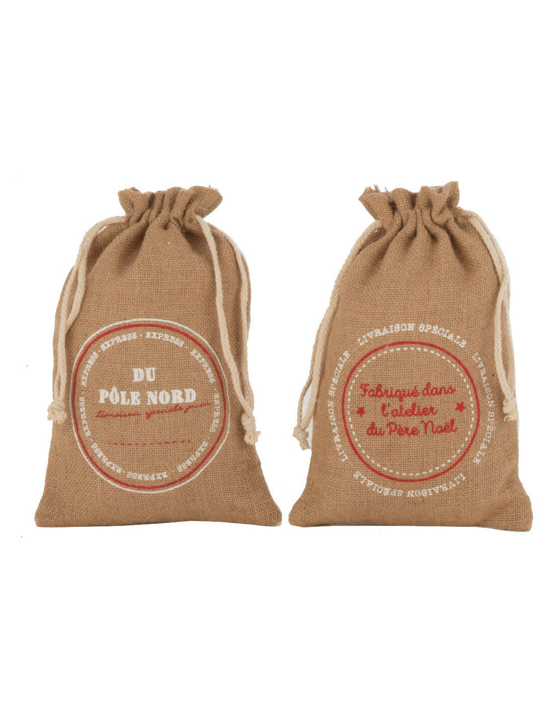 Sac Cadeaux de Noël Français 30 cm en Jute Naturel (Lot de 2) - 1