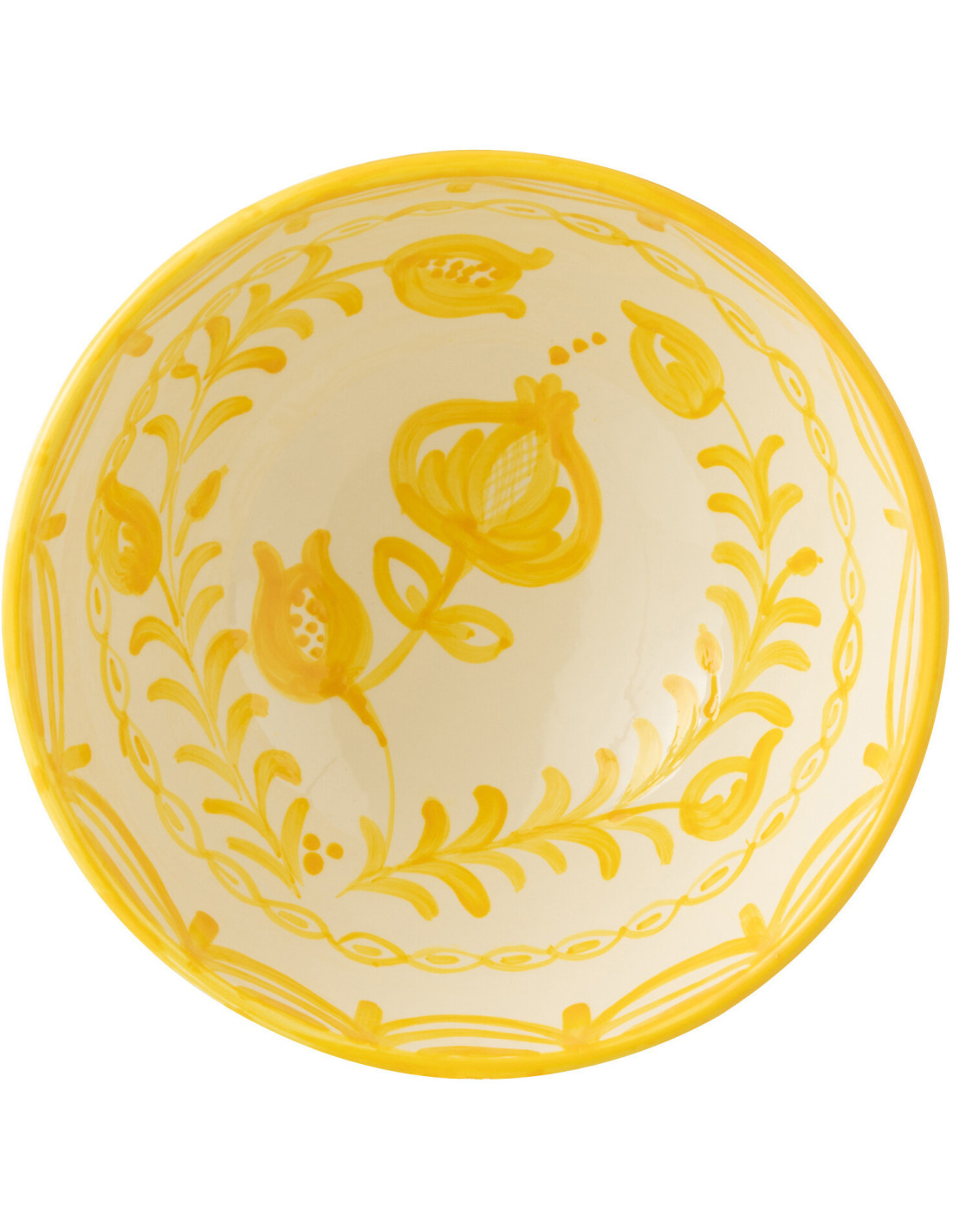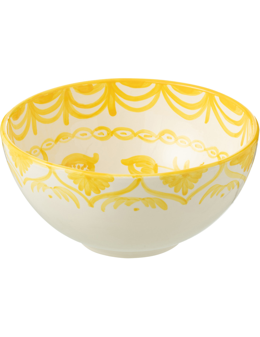 Saladier original rond 28 cm en Céramique Jaune Blanc Motif fleur Granada