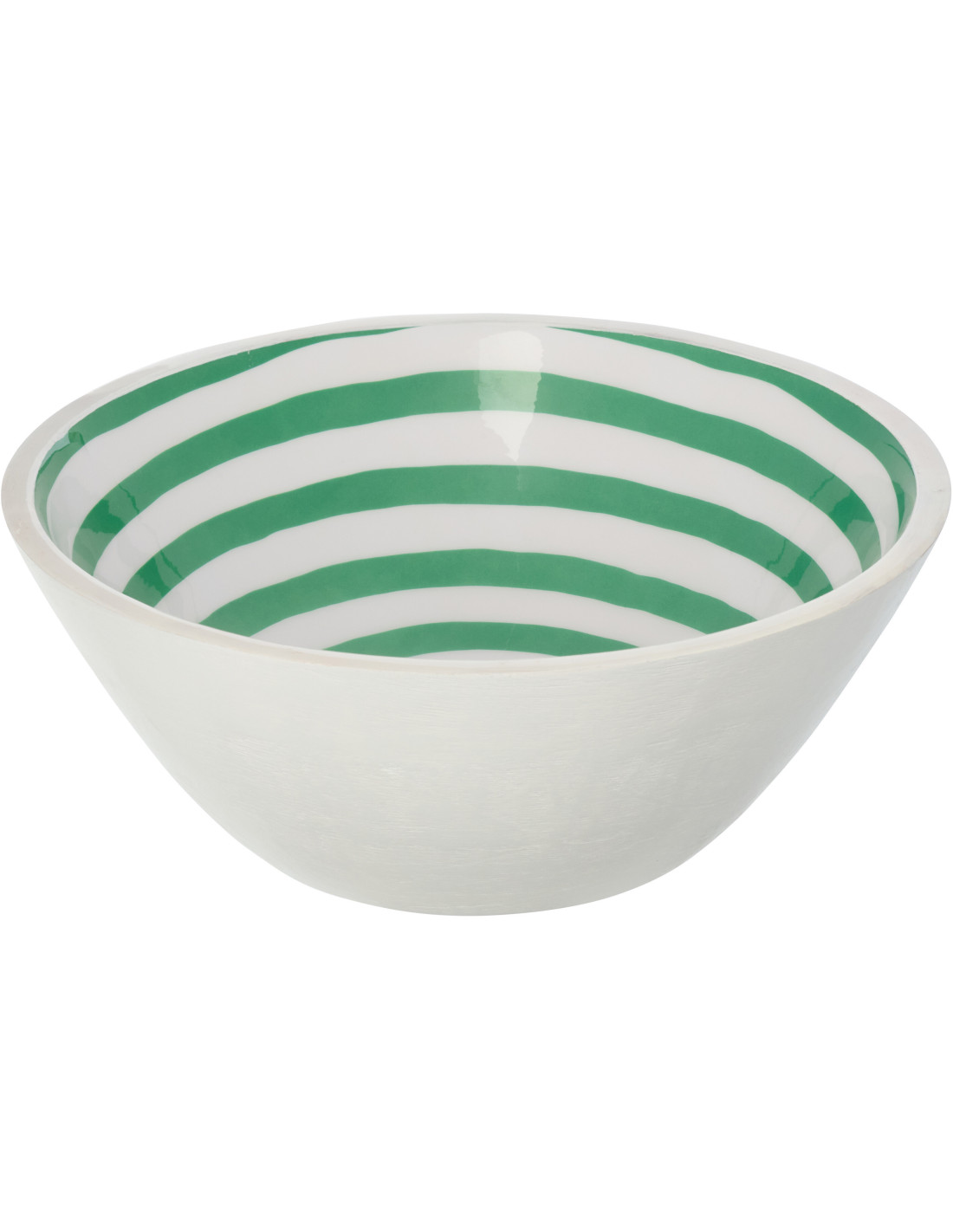 Saladier style bord de mer Rond 30 cm Bois de manguier Blanc Vert Motif lignes Sorella