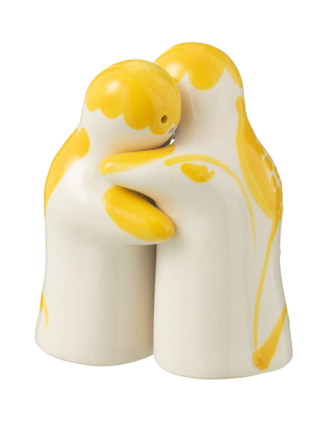 Salière et Poivrière Personnages en Céramique Jaune Blanc Motif fleur Granada - 1