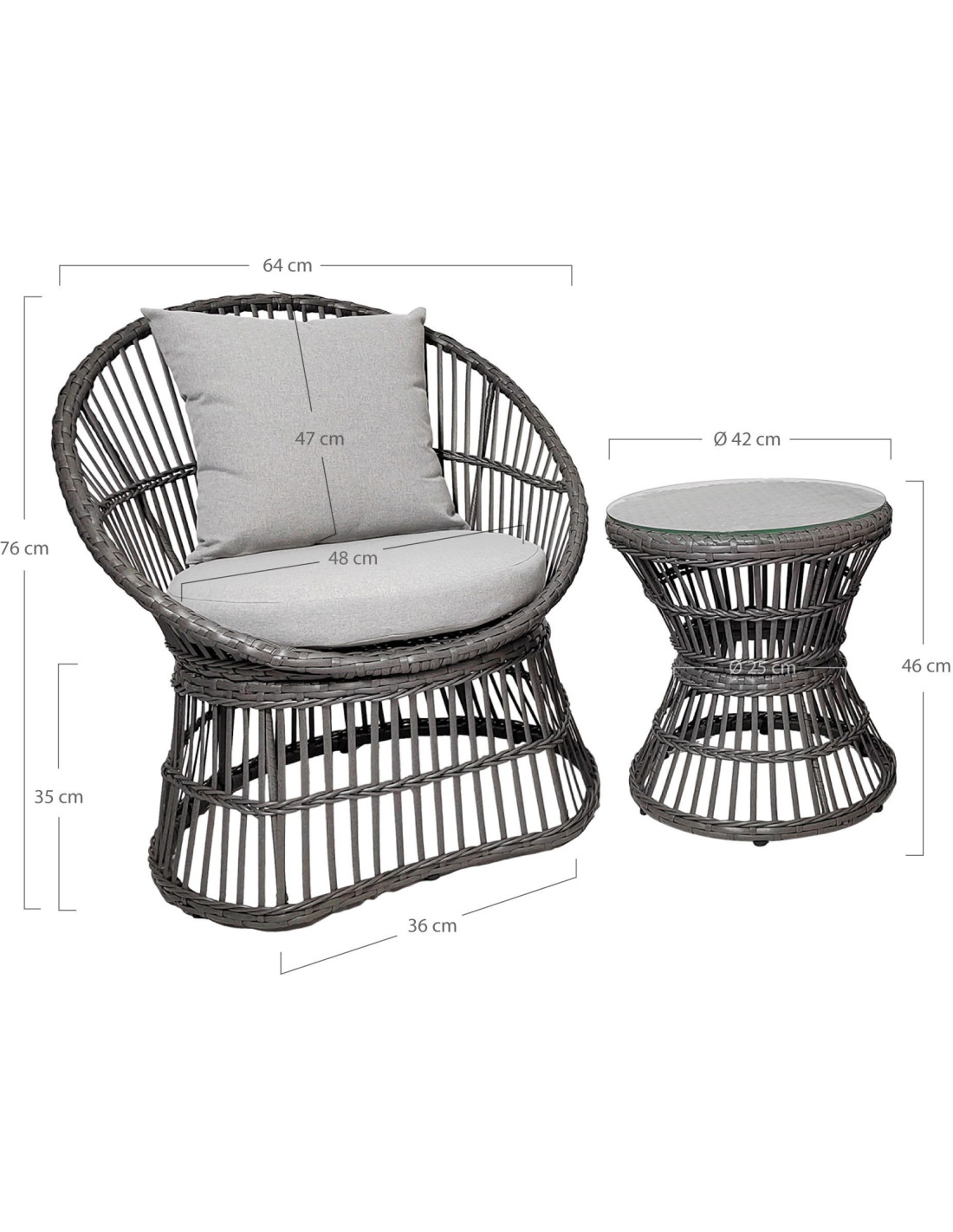 - Longueur 42 cm x Largeur 42 cm x Hauteur 46 cm