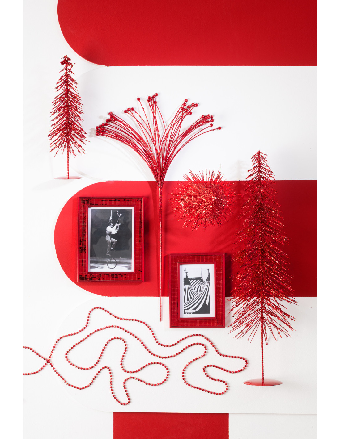 Sapin de Noël déco Hauteur 32 cm en Plastique Rouge Avec paillettes Cekin - 1