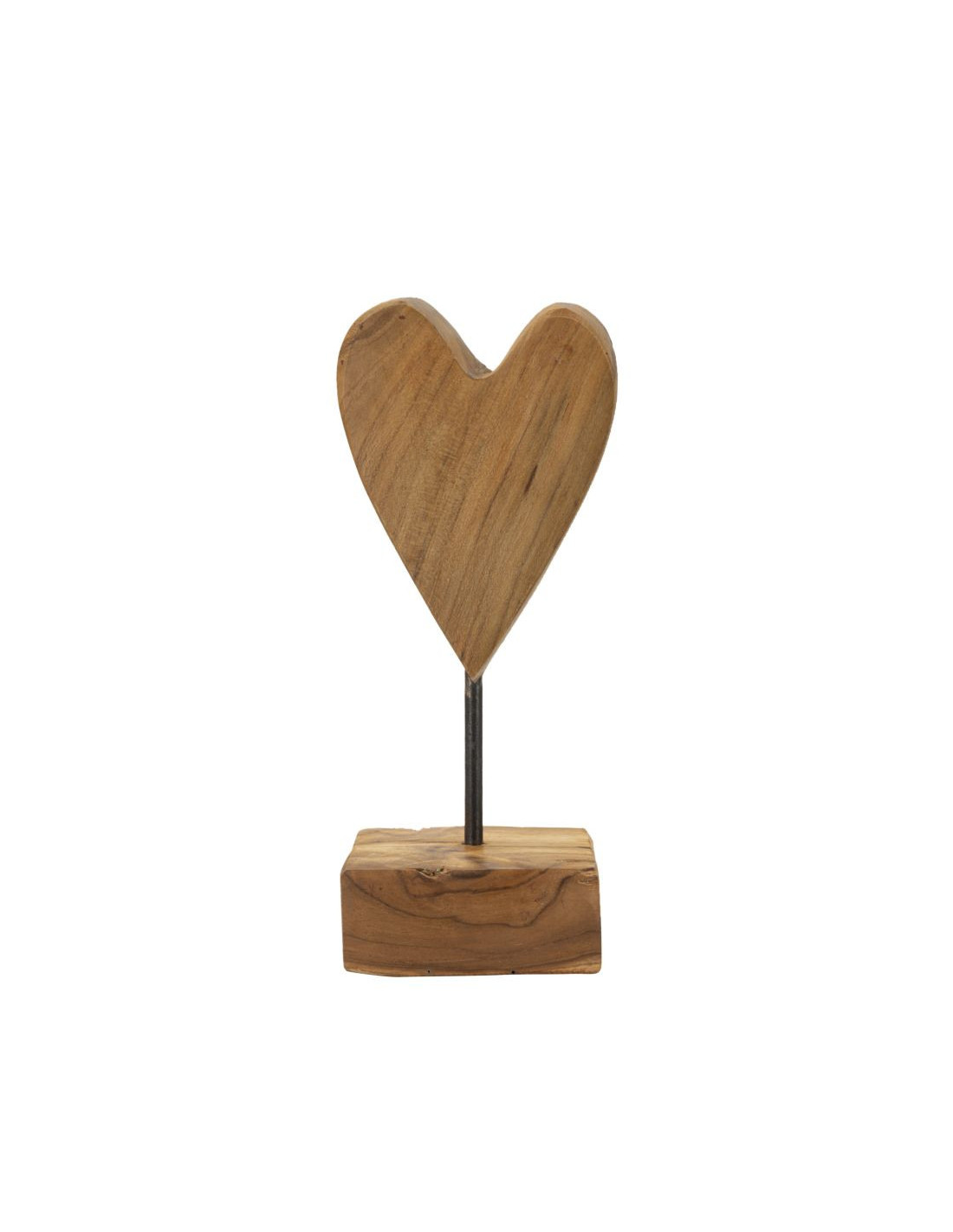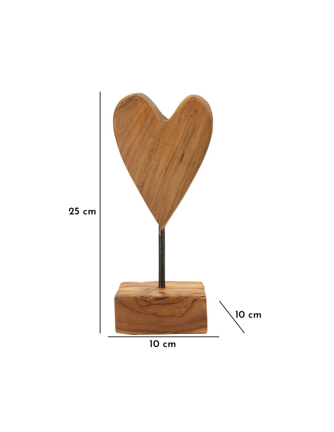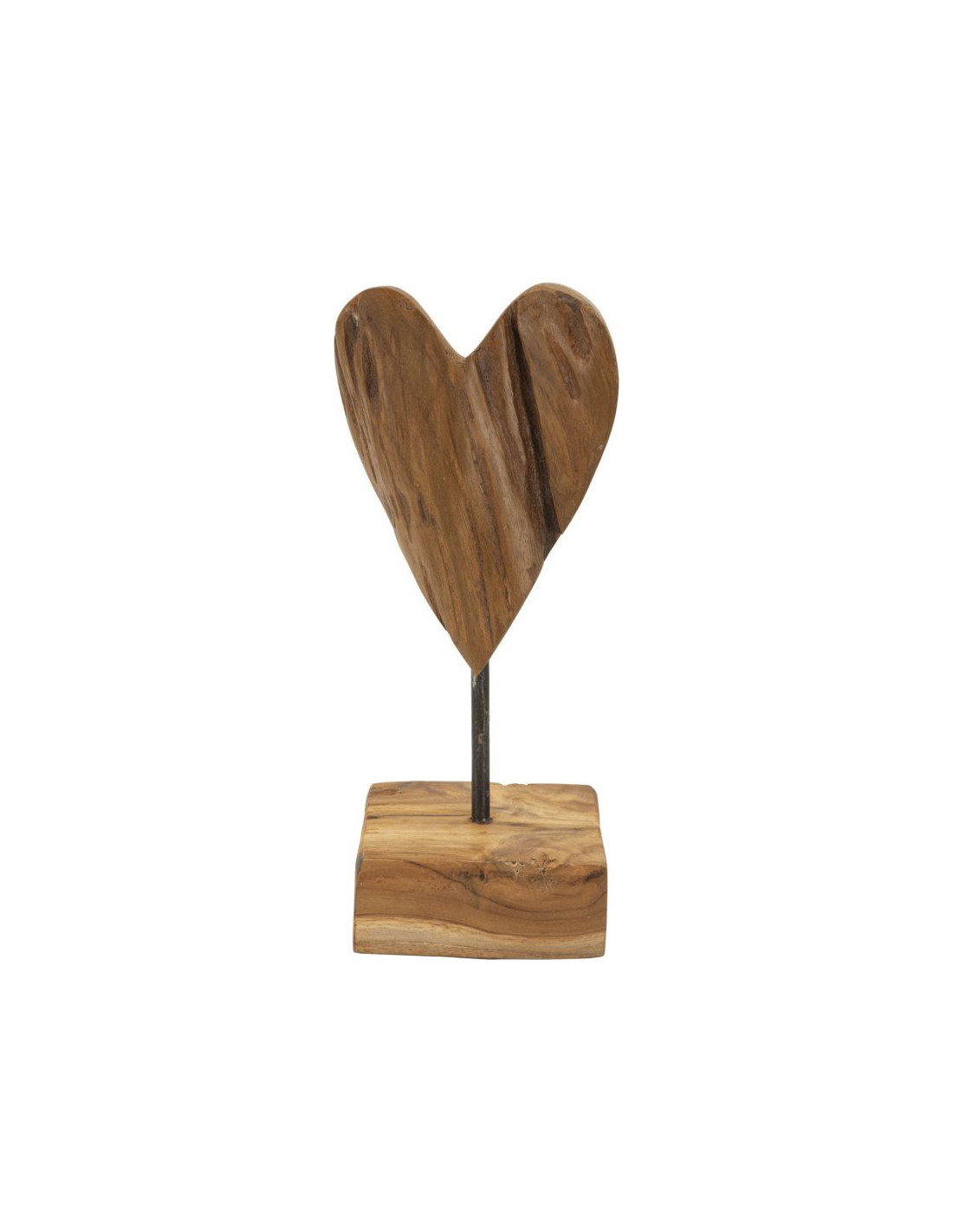 Sculpture artisanale sur pied Coeur Hauteur 25 cm en Bois de teck recyclé Marron Cuore