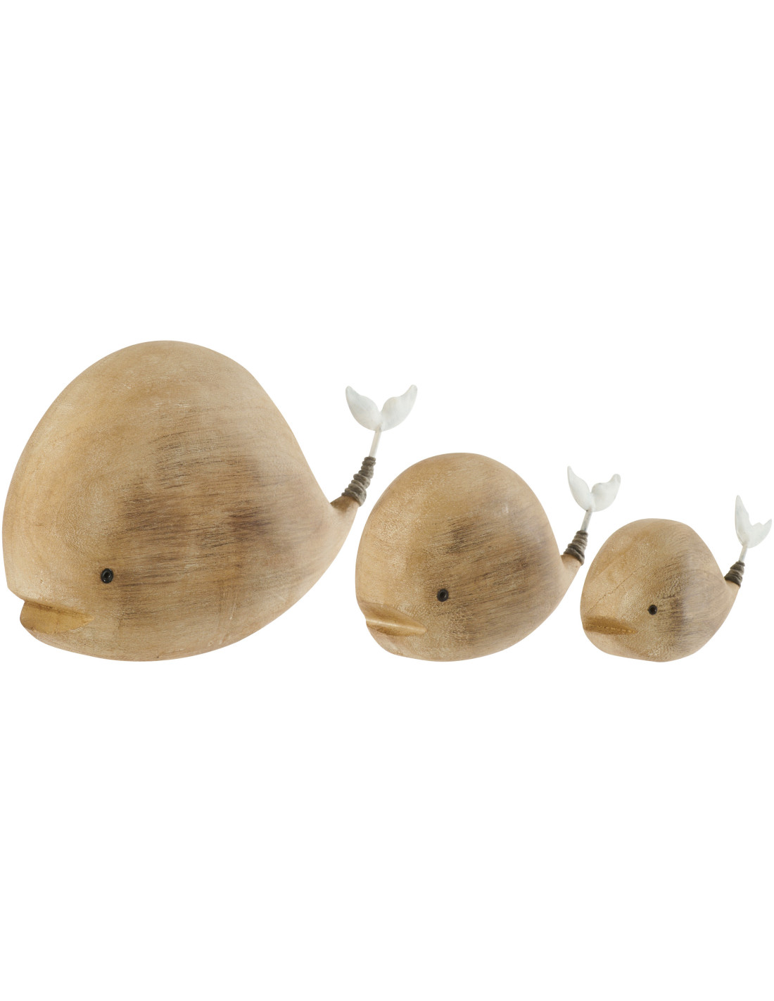Sculpture déco bord de mer Baleine 25 cm Bois de paulownia Naturel Blanc Nautina