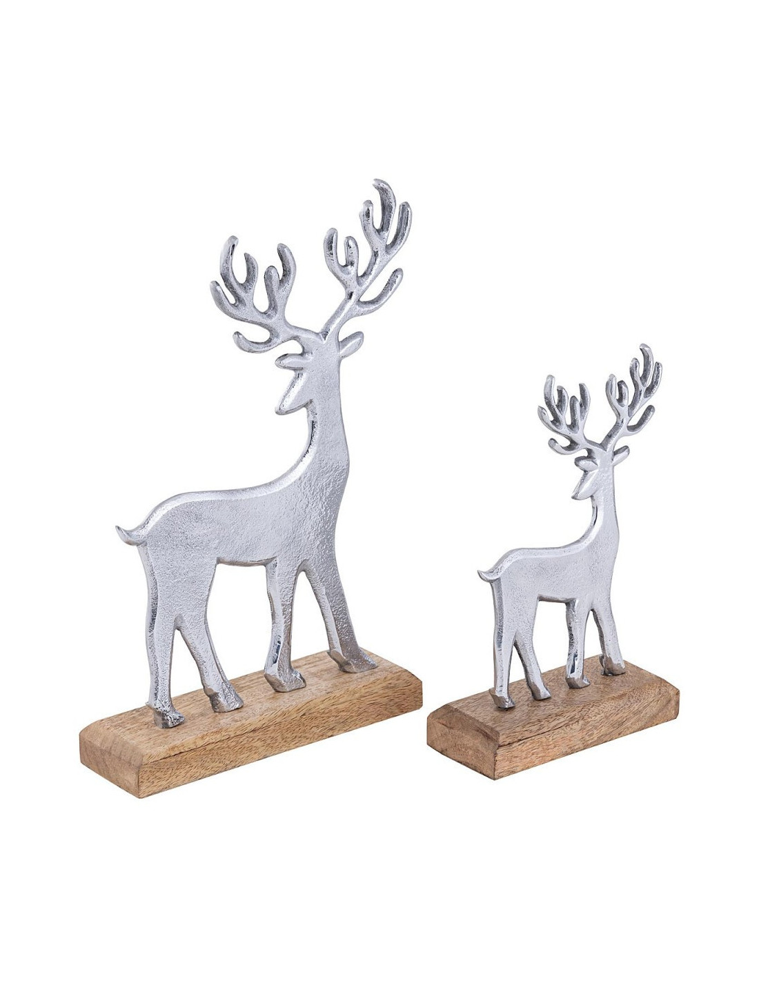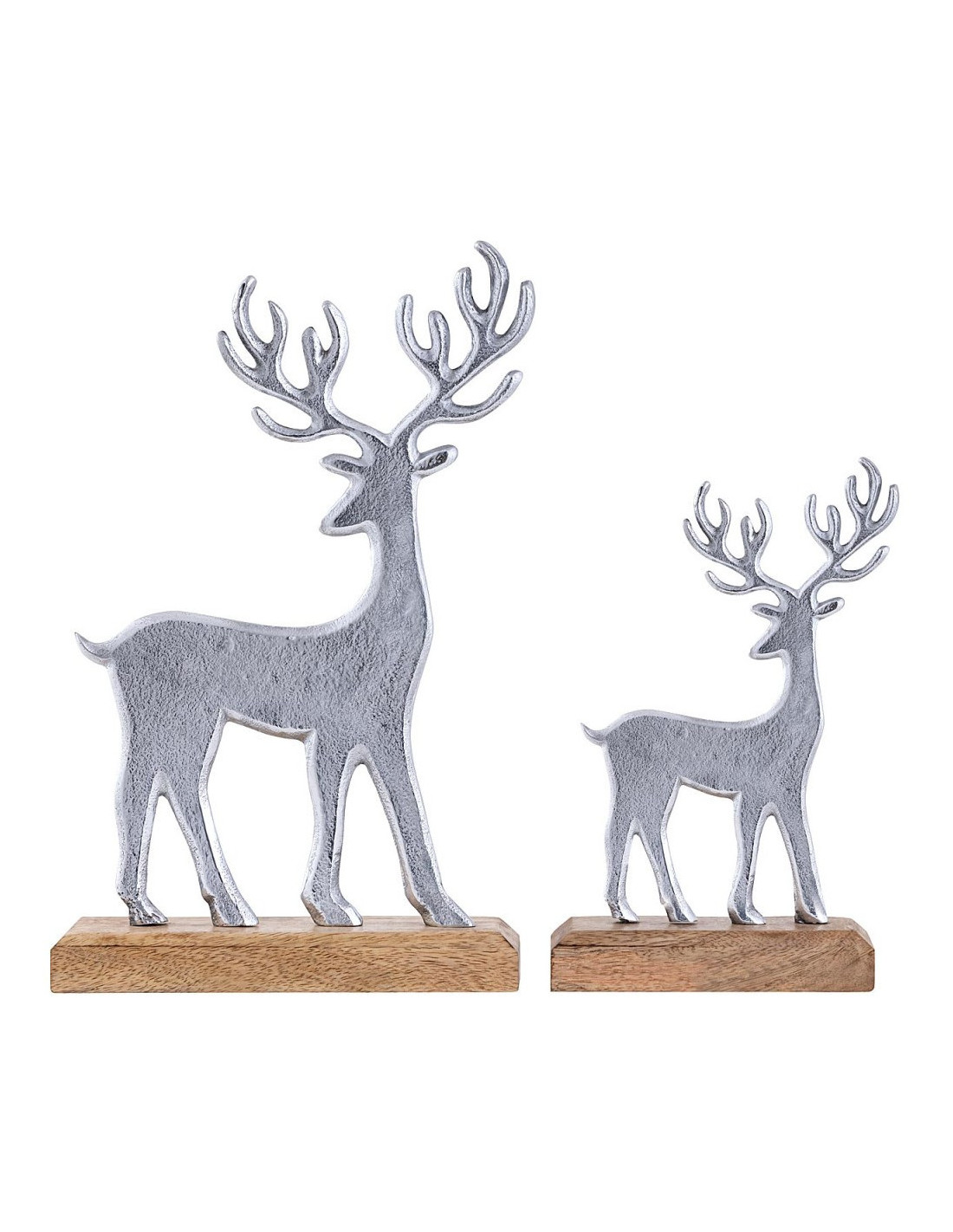 Sculpture déco Cerfs en Bois de manguier massif Naturel Métal Doré Pavron (Lot de 2) - 6