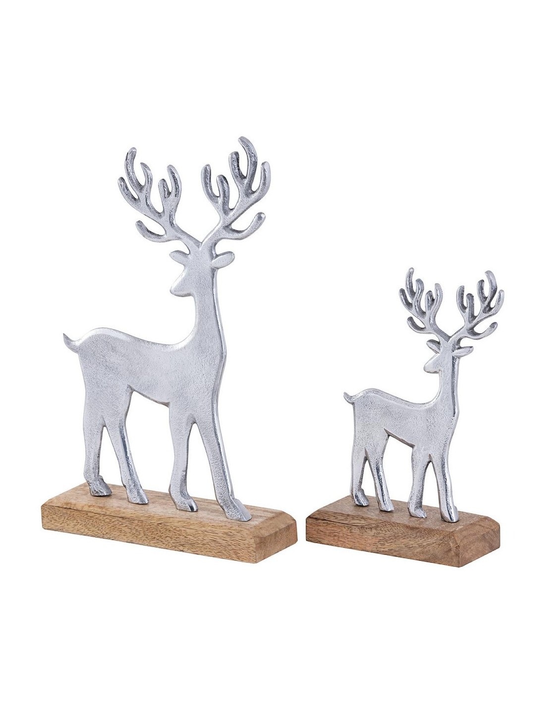 Sculpture déco Cerfs en Bois de manguier massif Naturel Métal Doré Pavron (Lot de 2) - 1