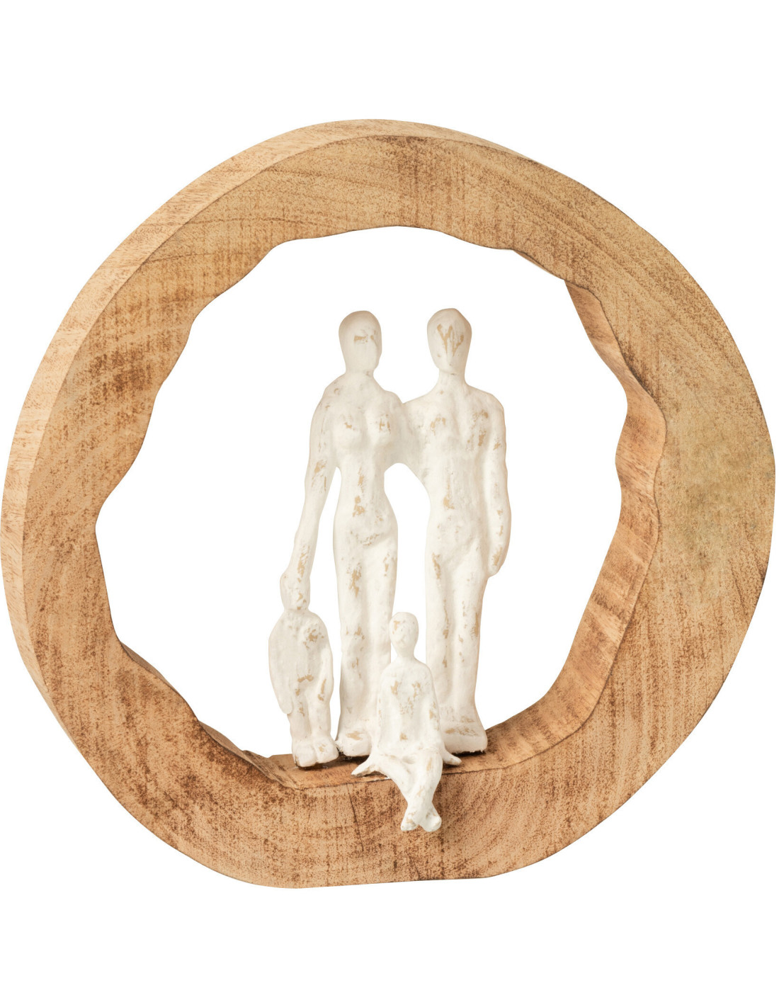 Sculpture déco moderne Famille 27 cm en Bois de manguier Naturel Métal Blanc Jorvyn
