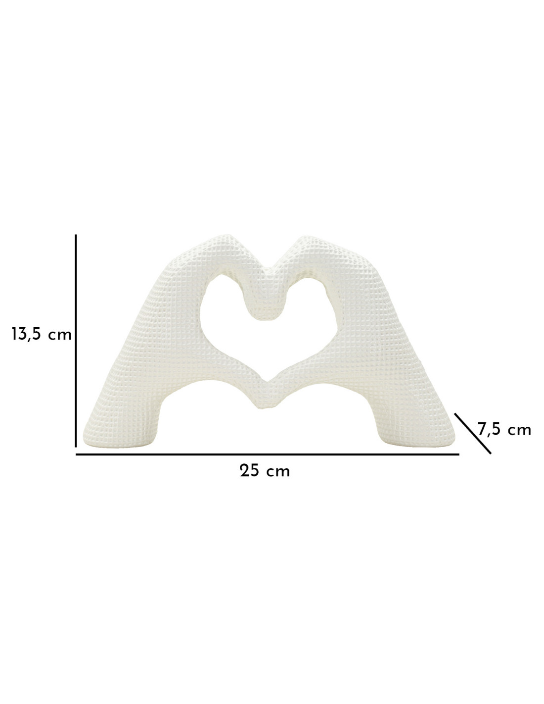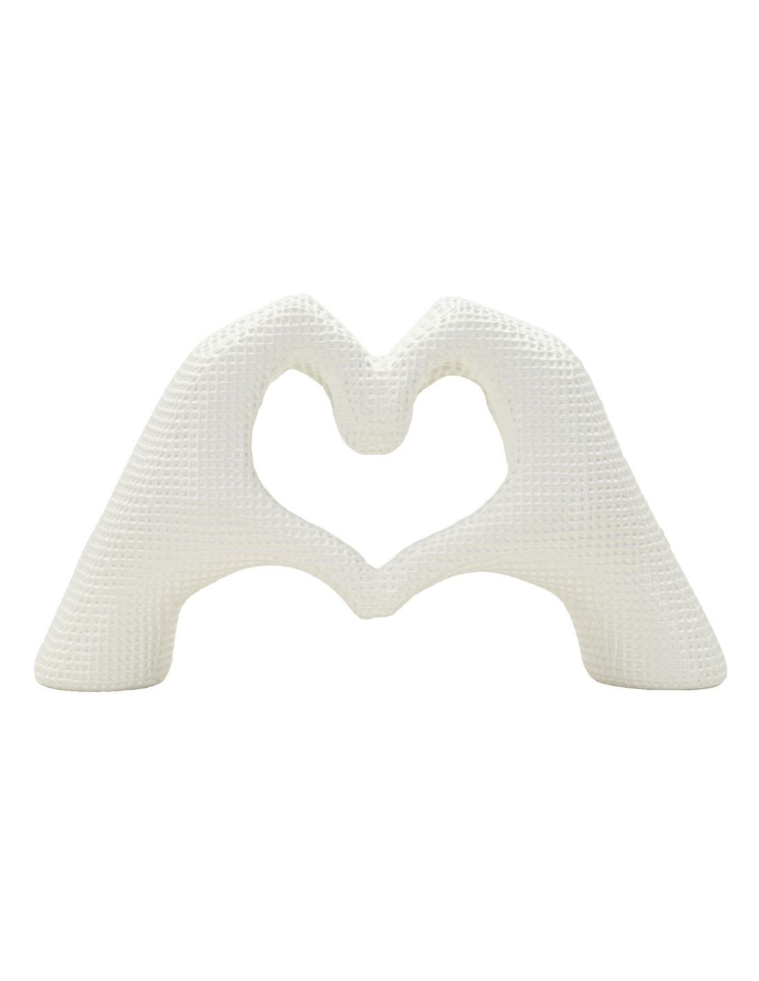 Sculpture déco moderne Mains Coeur 25 cm Résine Blanc Brillant Lover