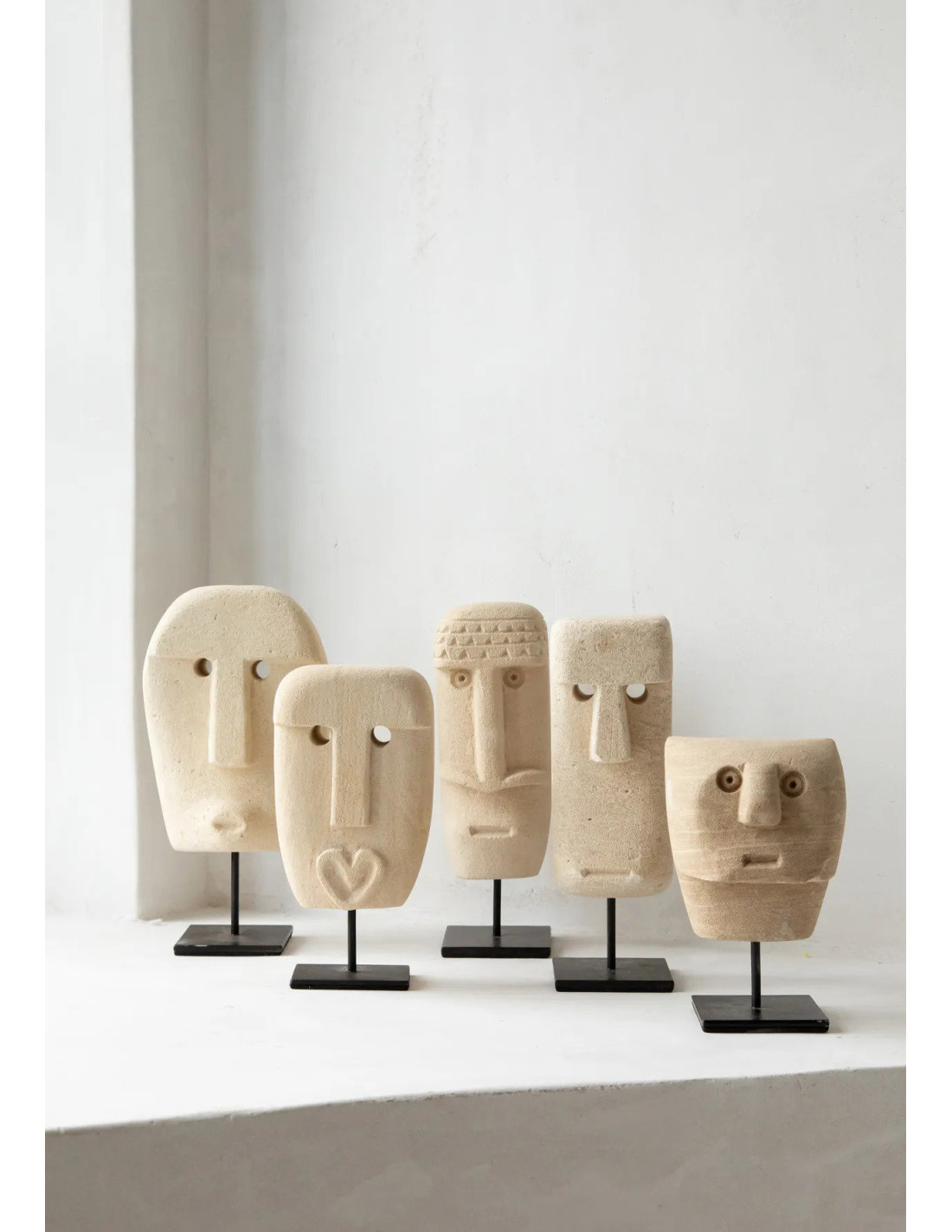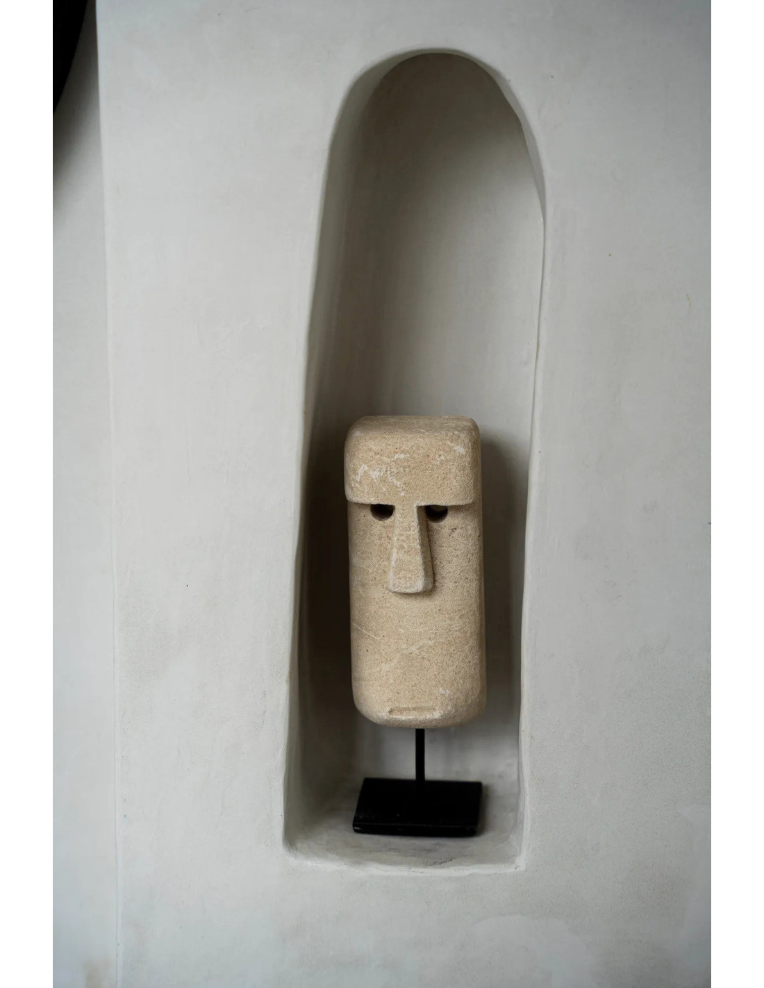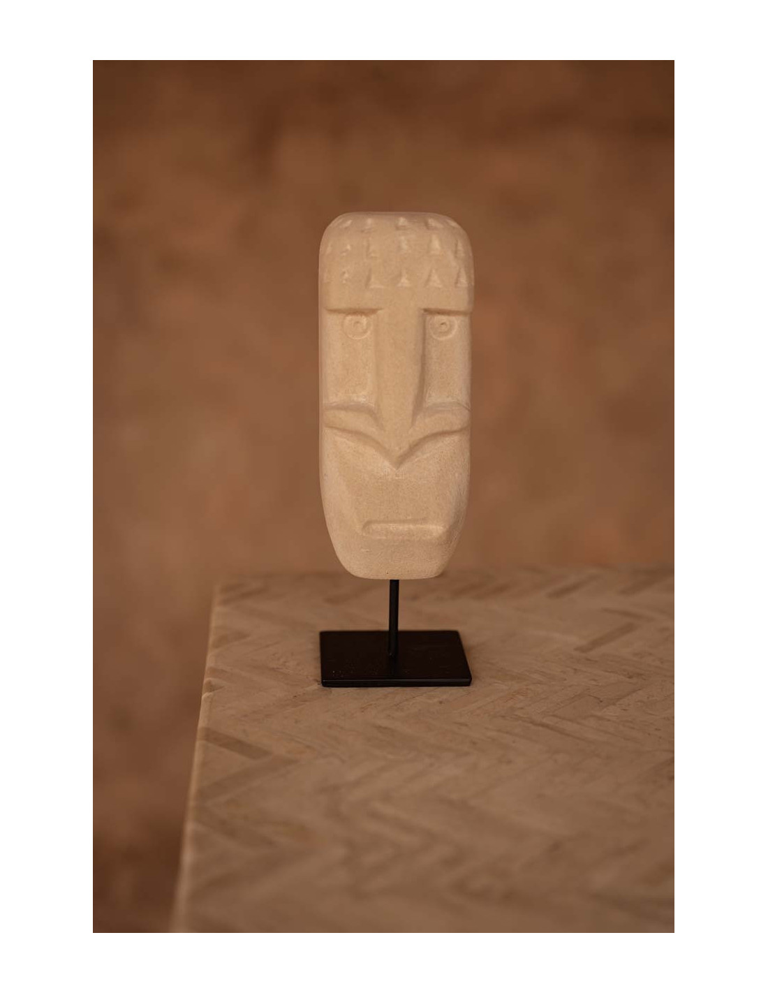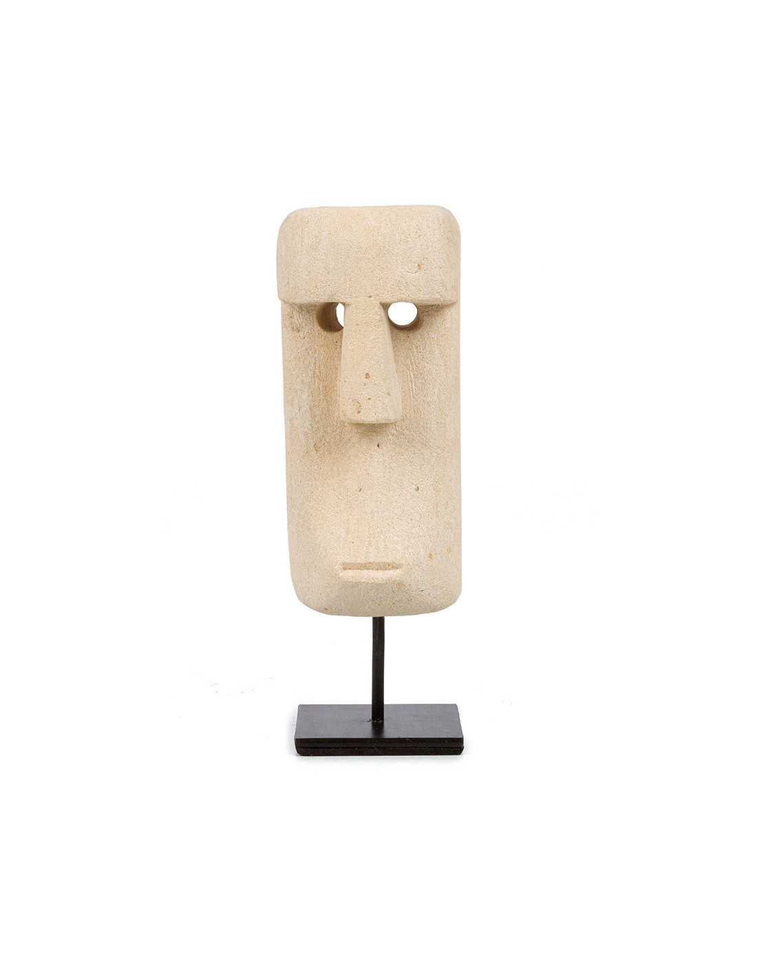 Sculpture déco primitive sur pied Hauteur 19 cm Grès Beige sable Métal Noir The Sumba Stone