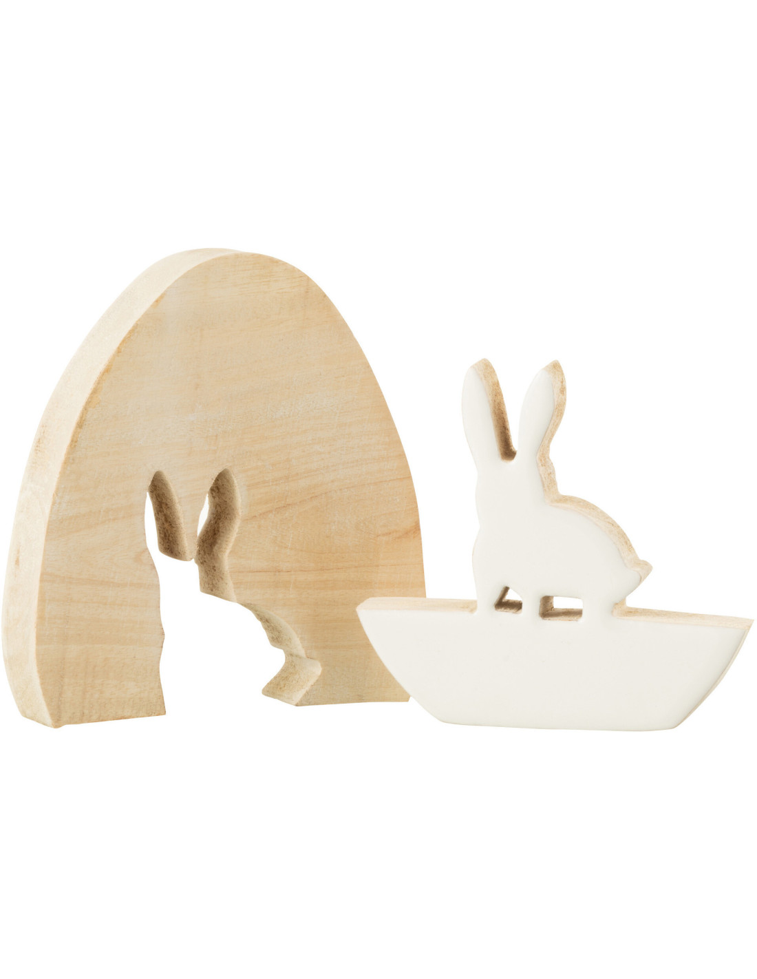Sculpture déco Puzzle Lapin Oeuf Hauteur 18 cm en Bois Naturel Blanc Gorviel