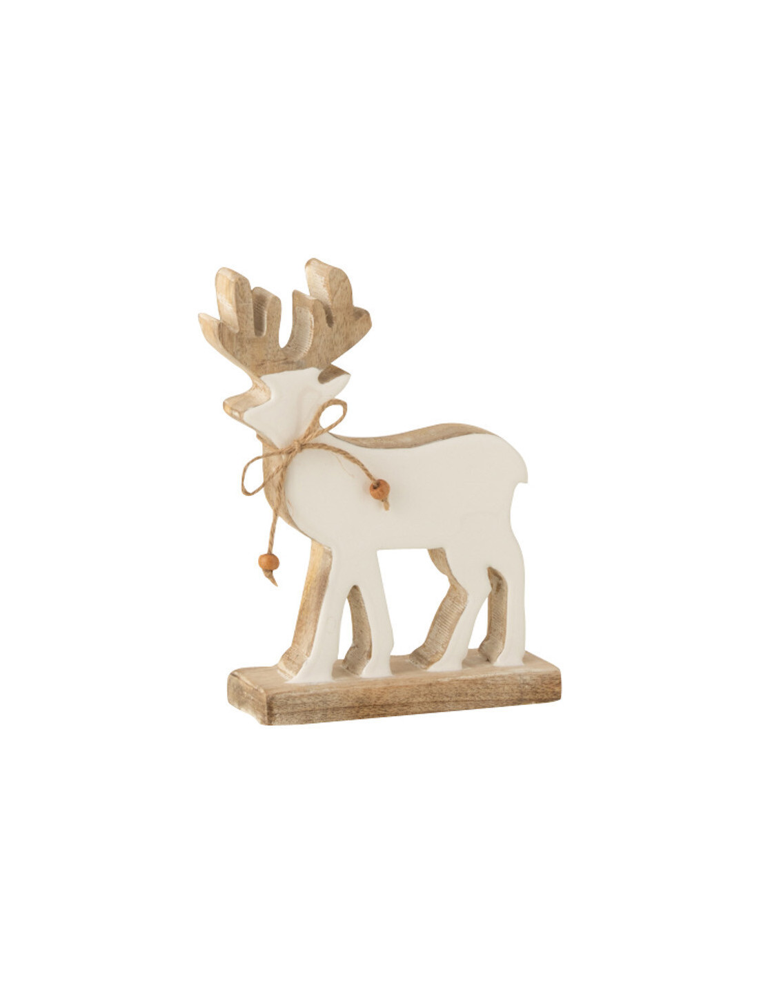 Sculpture déco Renne Hauteur 22 cm en Bois de manguier Blanc Naturel Kaïsha - 1