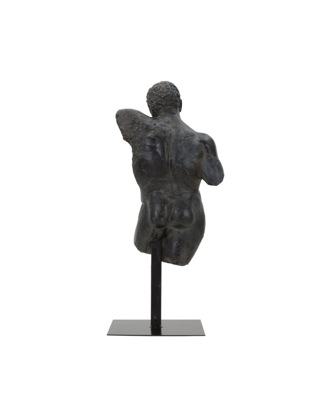 Sculpture moderne sur pied Disque Hauteur 60 cm en Bois de teck Naturel Métal Noir The Disk