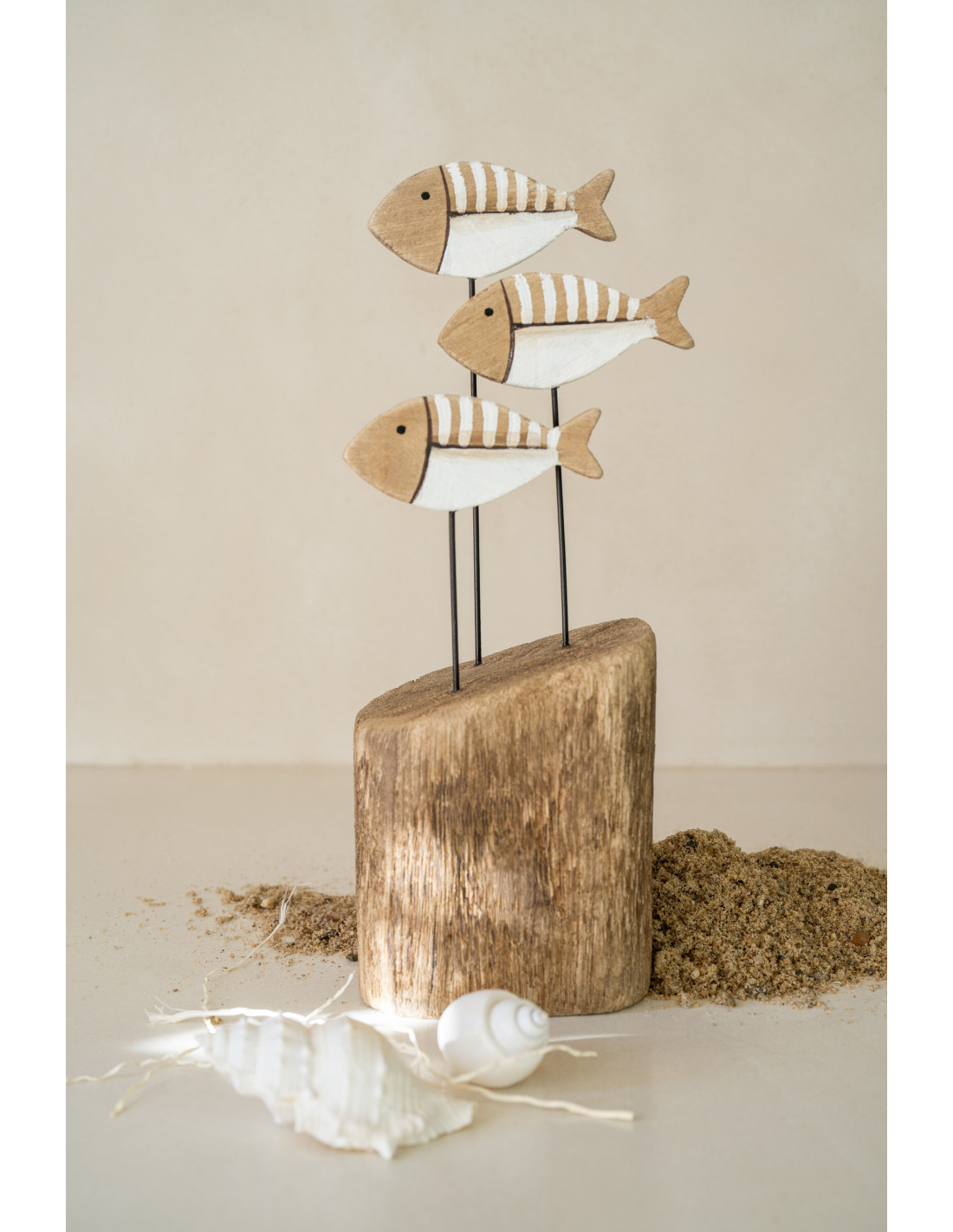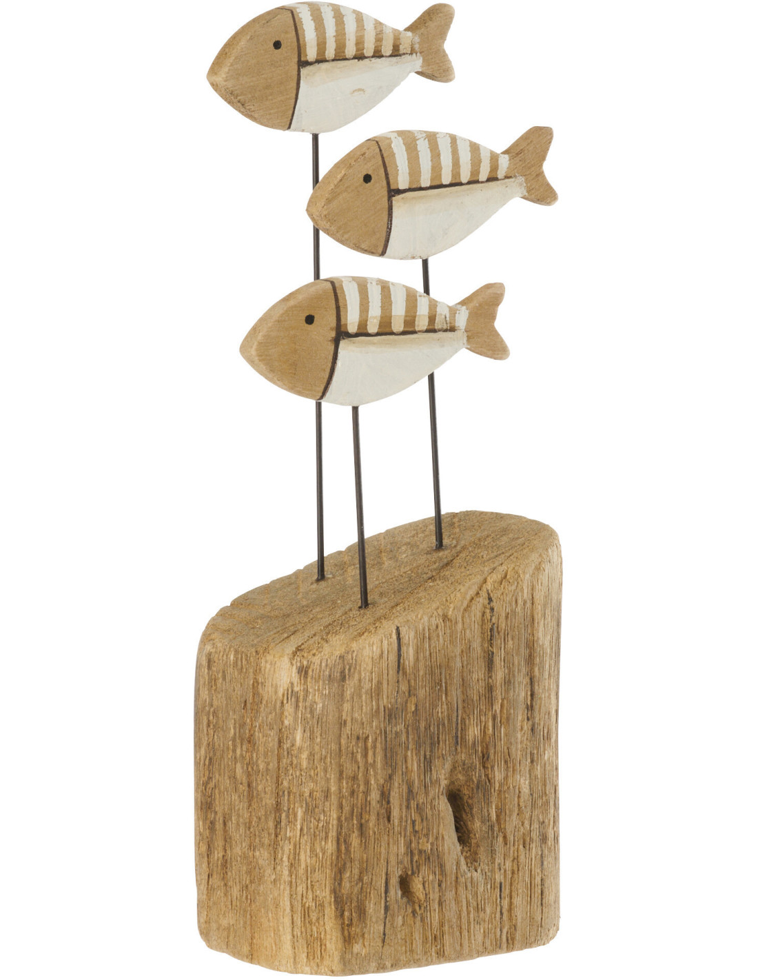 Sculpture déco sur pied Poissons H 26 cm Bois de paulownia Naturel Blanc Nautina