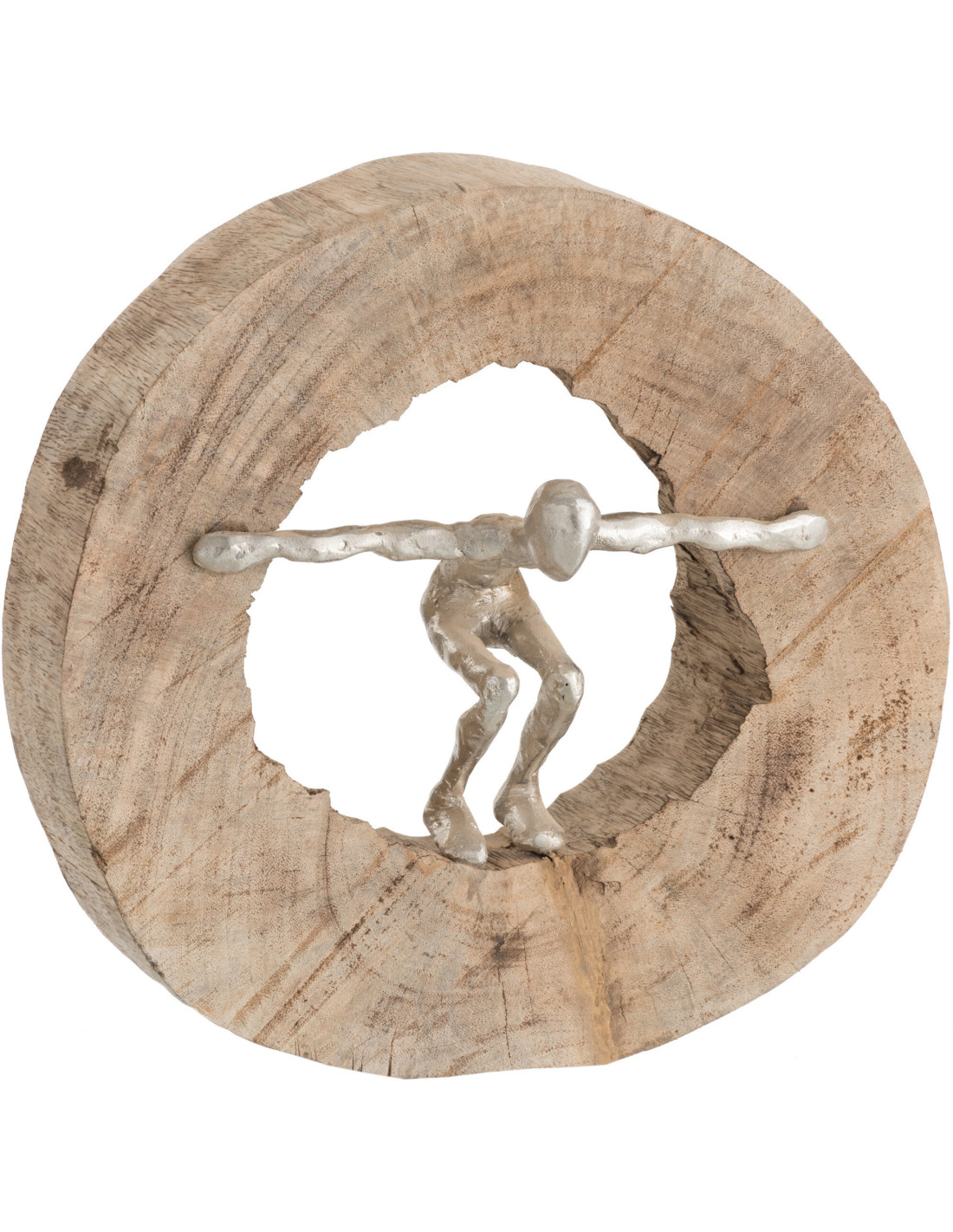 Sculpture moderne Homme qui saute 29 cm en Bois Naturel Métal Argenté Sylonia