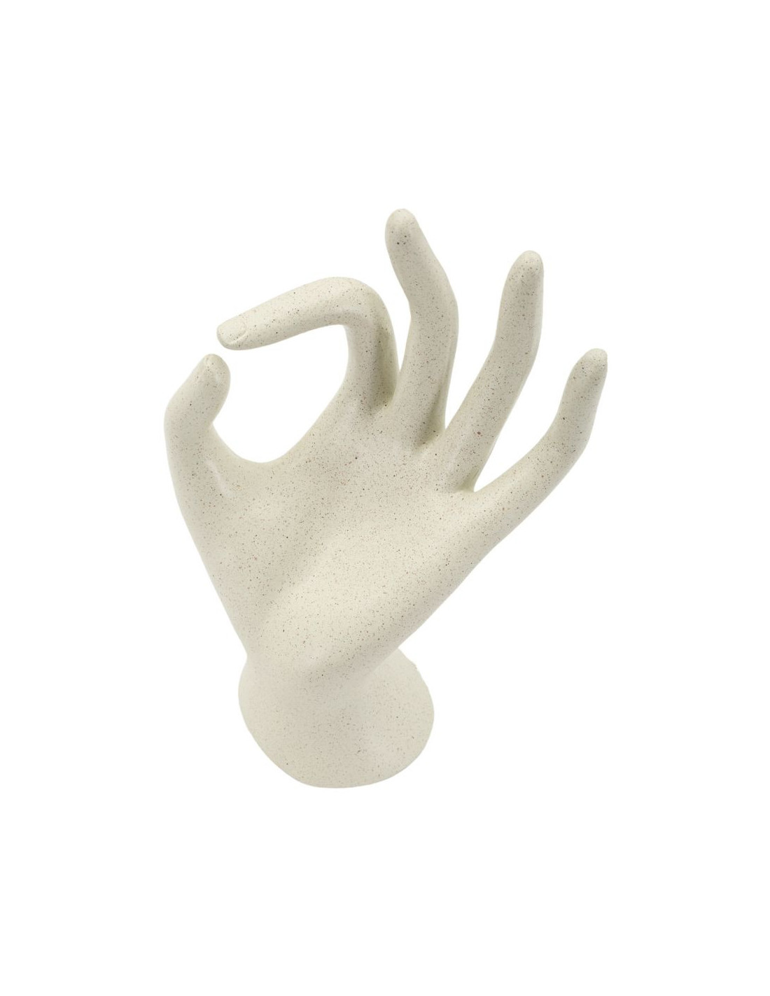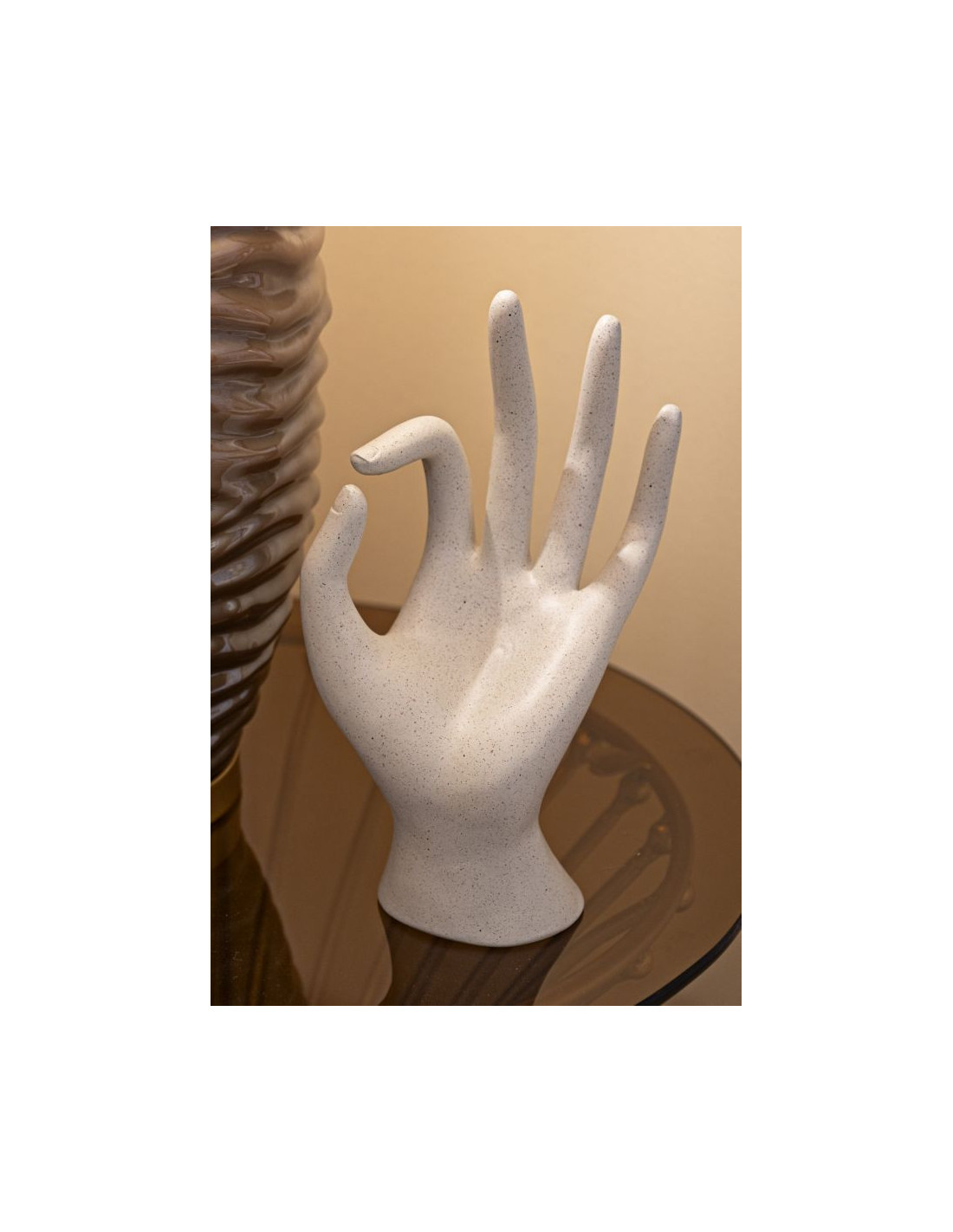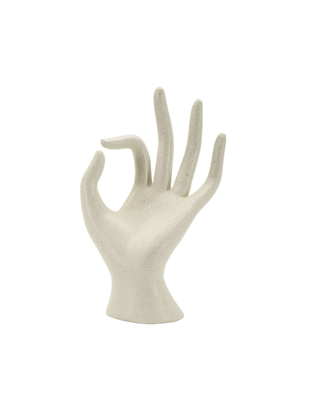 Sculpture moderne Main Ok Hauteur 24 cm Résine Blanc crème Stons