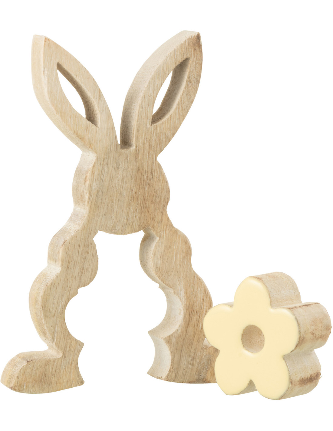 Sculpture moderne Puzzle Lapin Fleur Hauteur 18 cm en Bois Naturel Jaune Crayne - 1