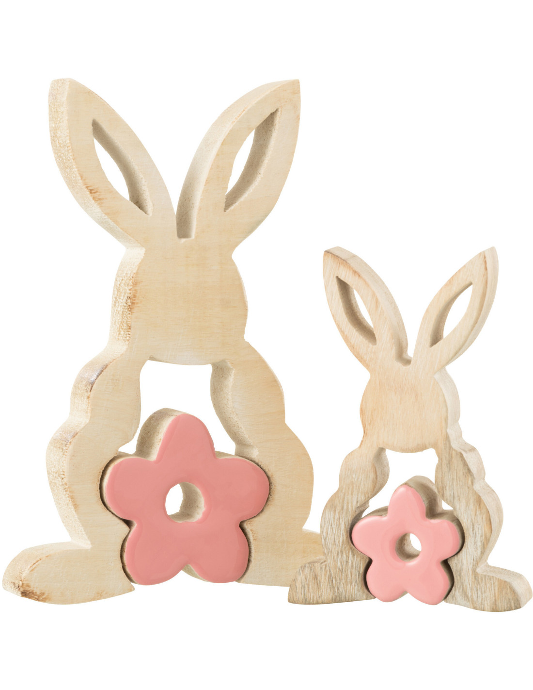 Sculpture moderne Puzzle Lapin Fleur Hauteur 21 cm en Bois Naturel Rose Crayne