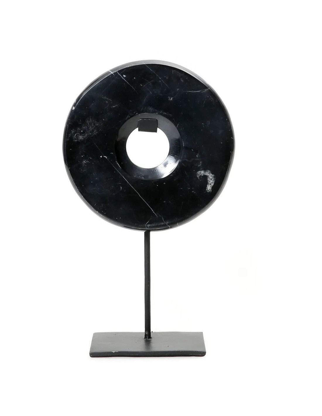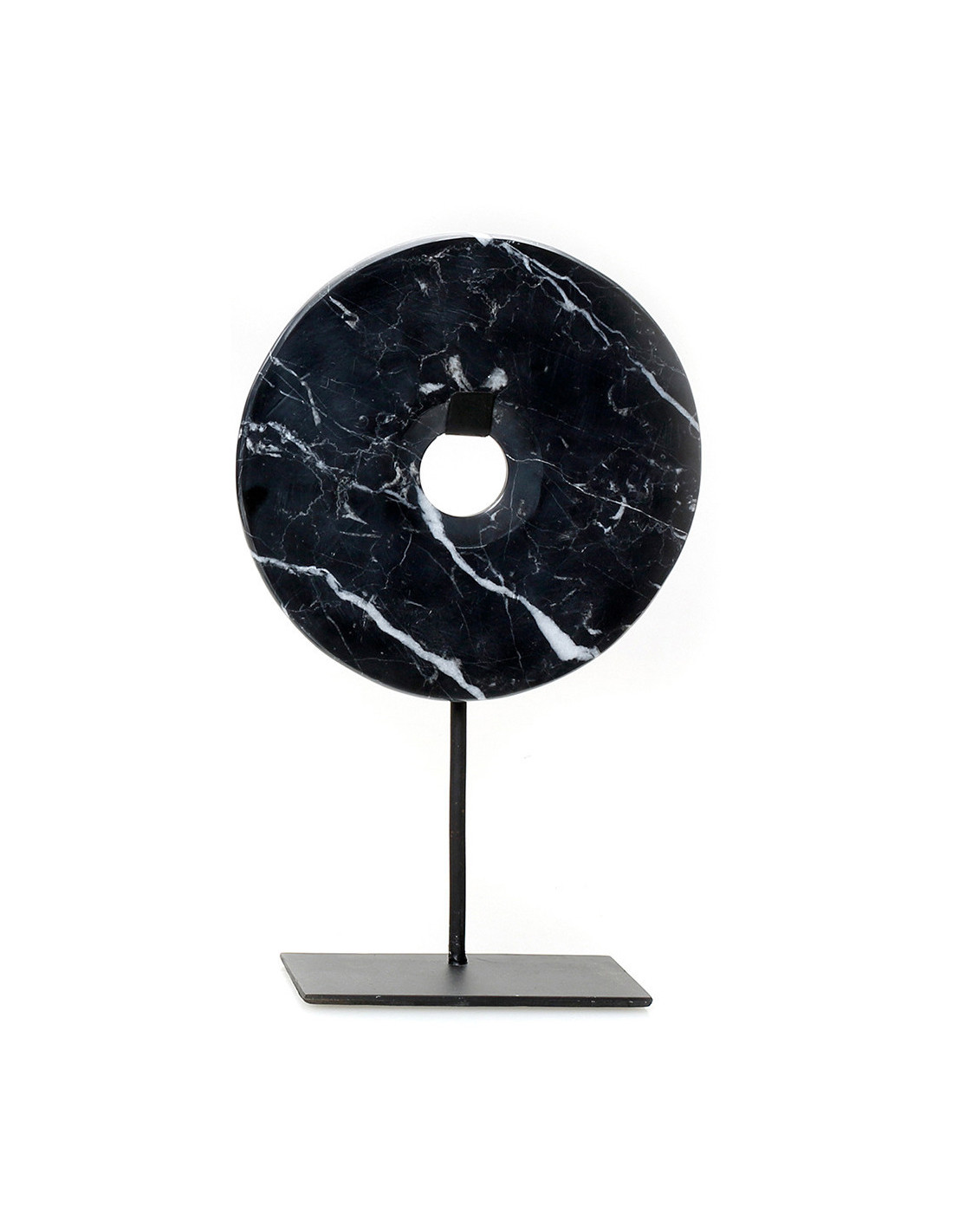 Sculpture moderne sur pied Disque Hauteur 35 cm en Marbre Métal Noir The Disk