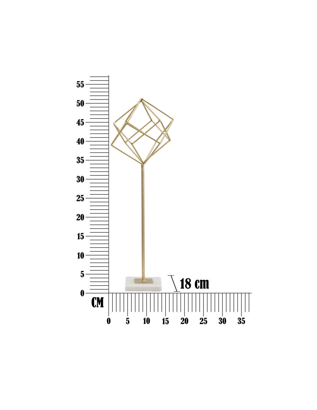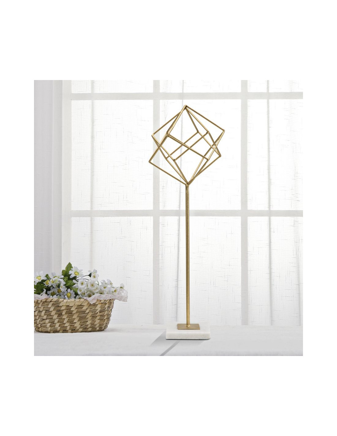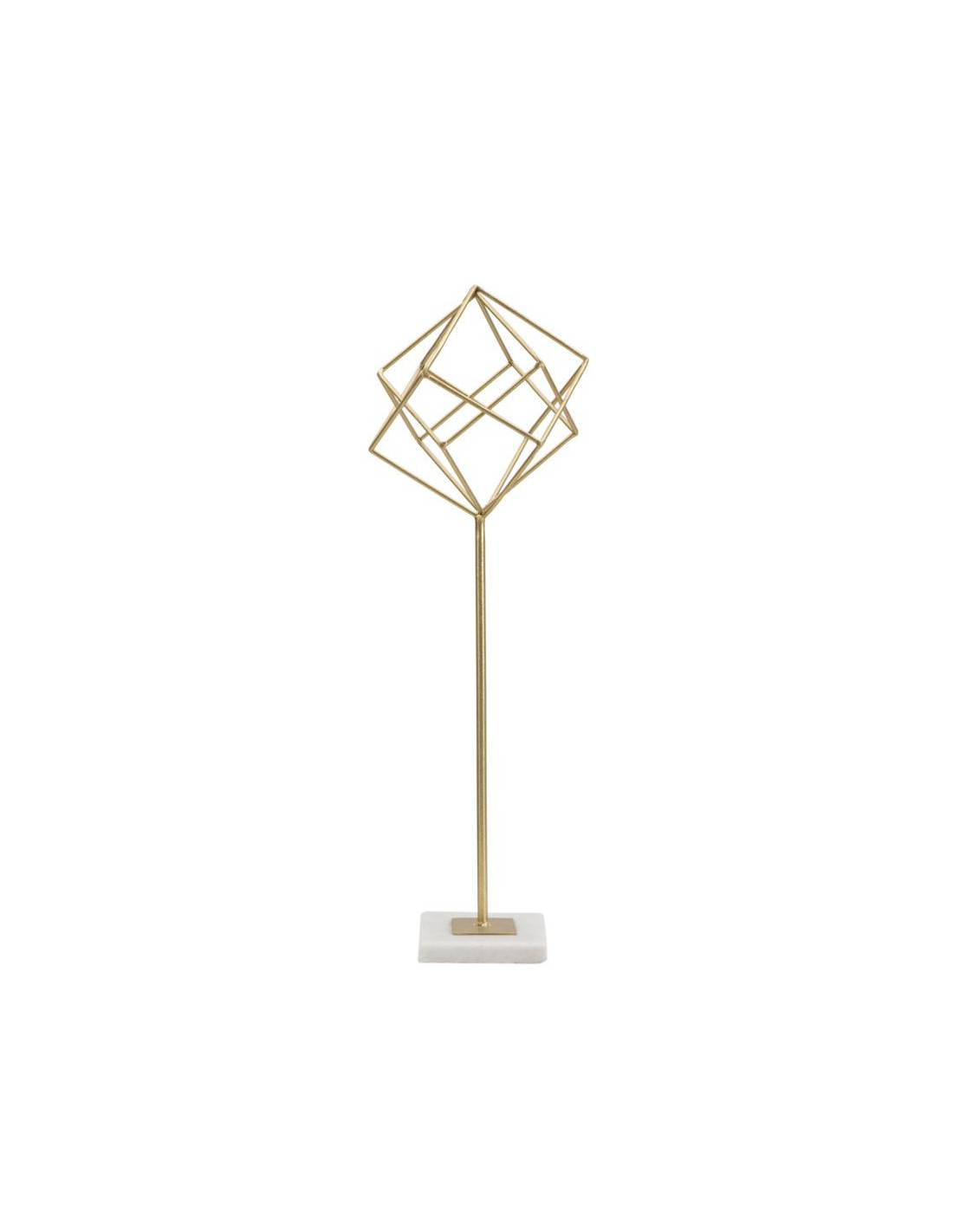 Sculpture moderne sur pied Forme géométrique Hauteur 52 cm en Métal Doré Marbre Blanc Tolir