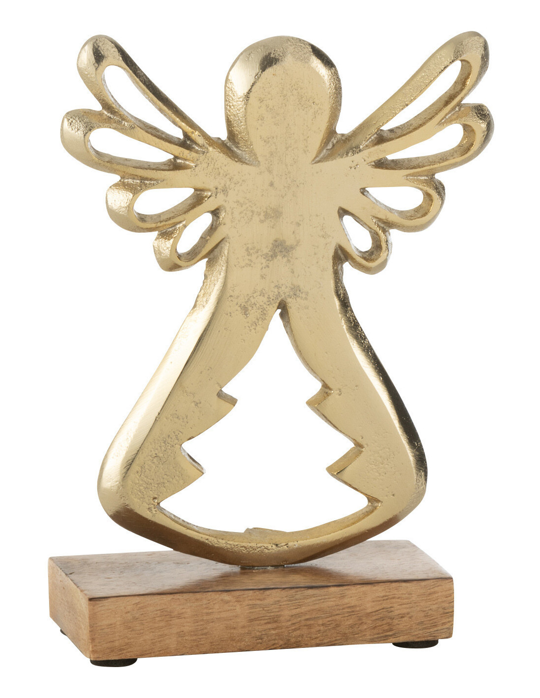 Sculpture sur pied Ange de Noël Hauteur 16 cm en Métal Doré Bois Marron Lorvyn - 1