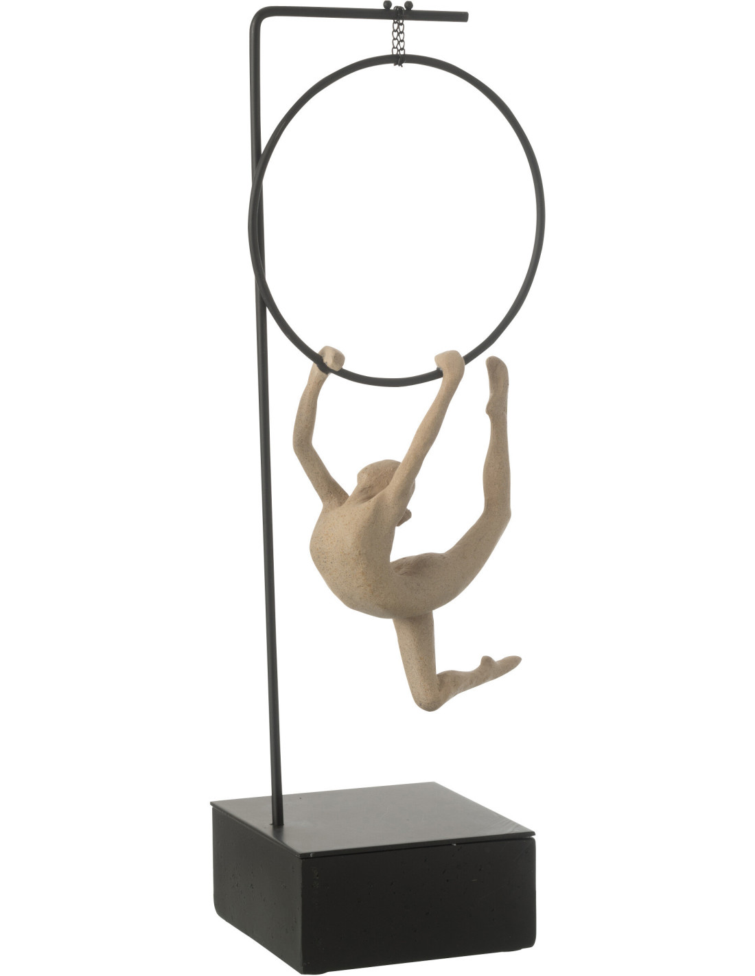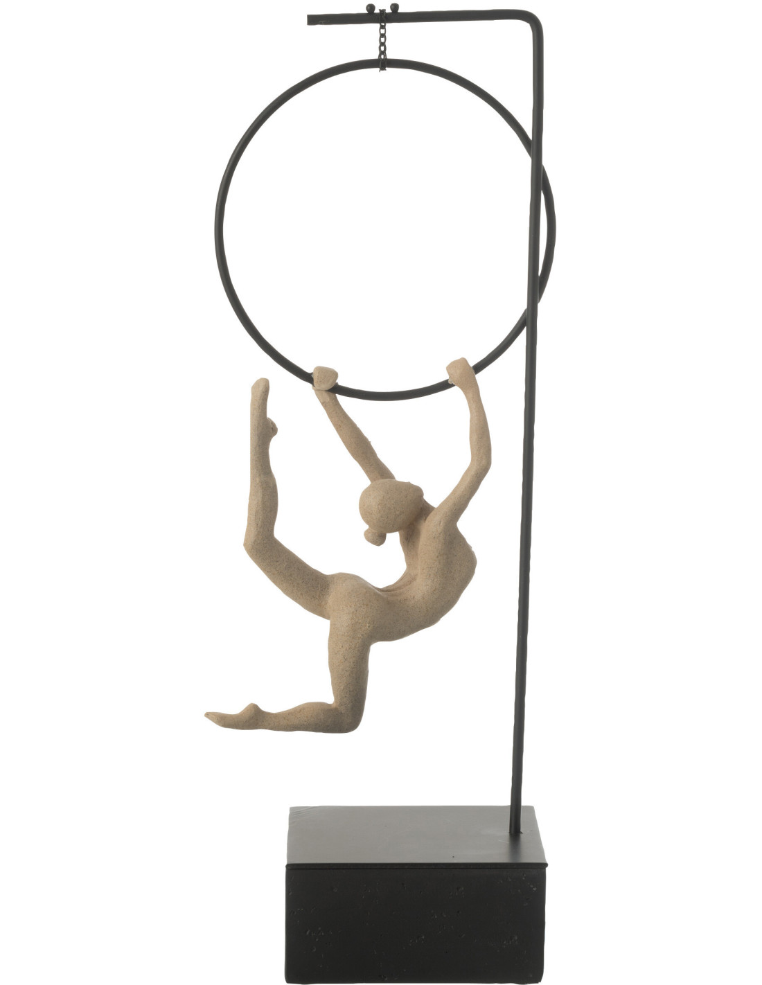 Sculpture sur pied moderne Gymnaste Cerceau Hauteur 48 cm en Résine Beige Métal Noir Lina