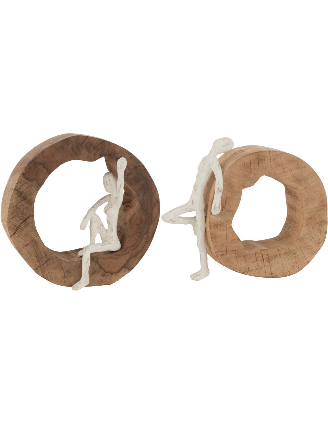 Sculptures modernes Homme abstrait 23 cm en Bois Naturel Blanc Auryan (Lot de 2)