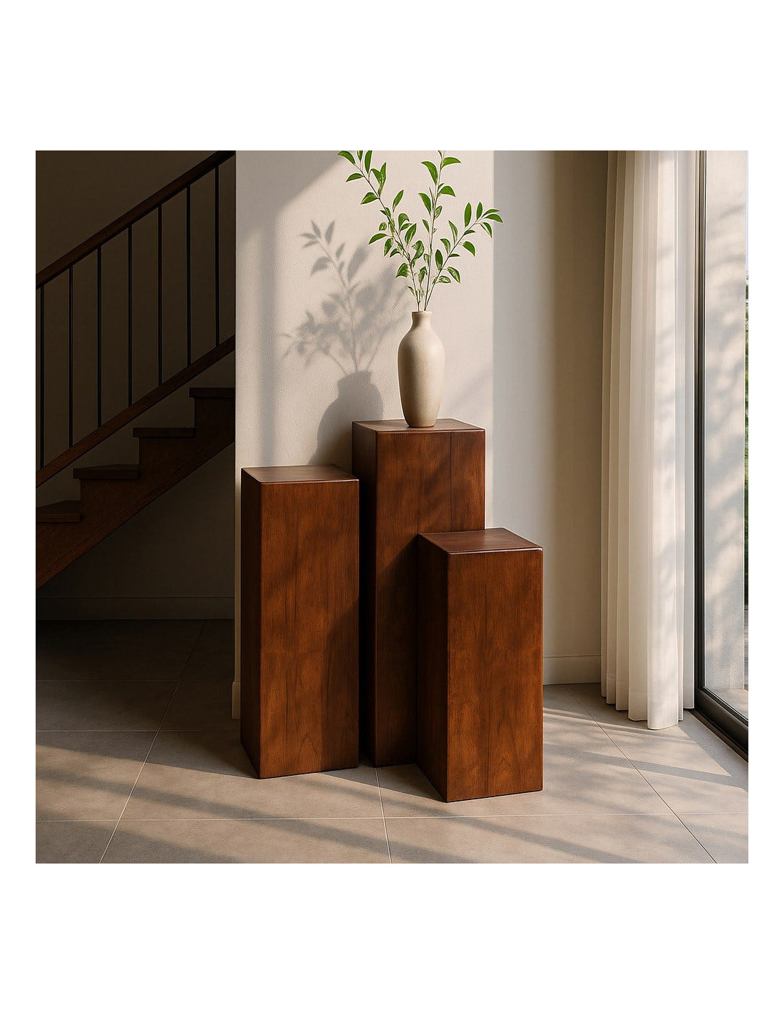 Sellette haute moderne Carré en Bois de manguier Marron Senes (Lot de 3)