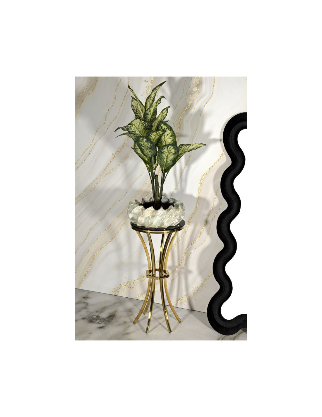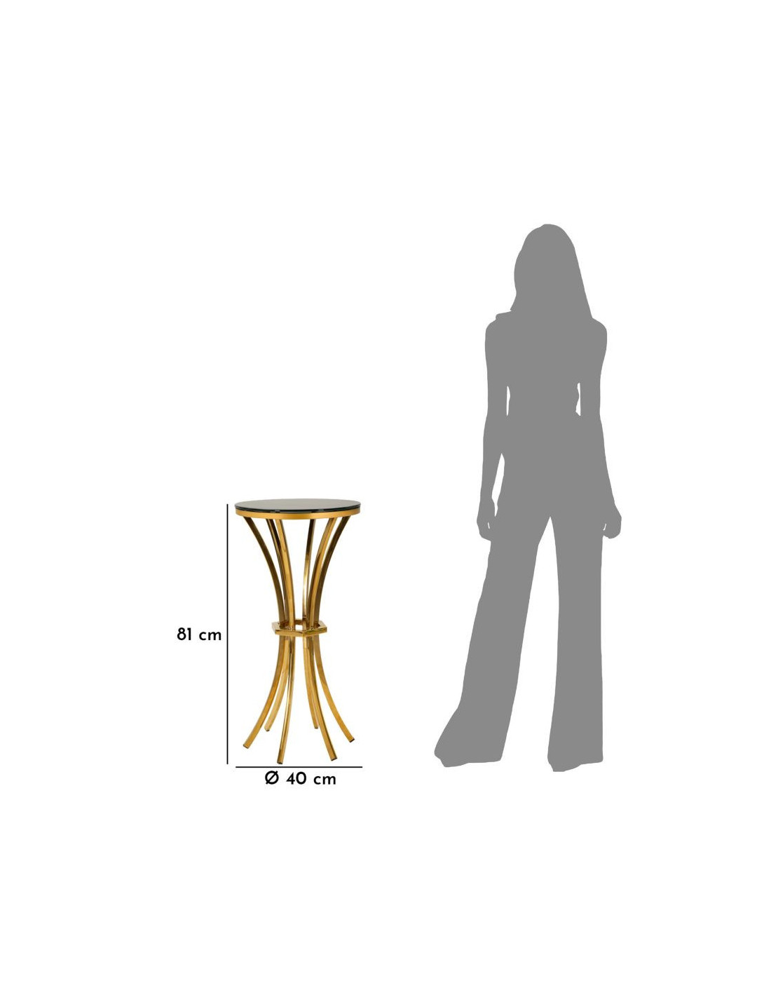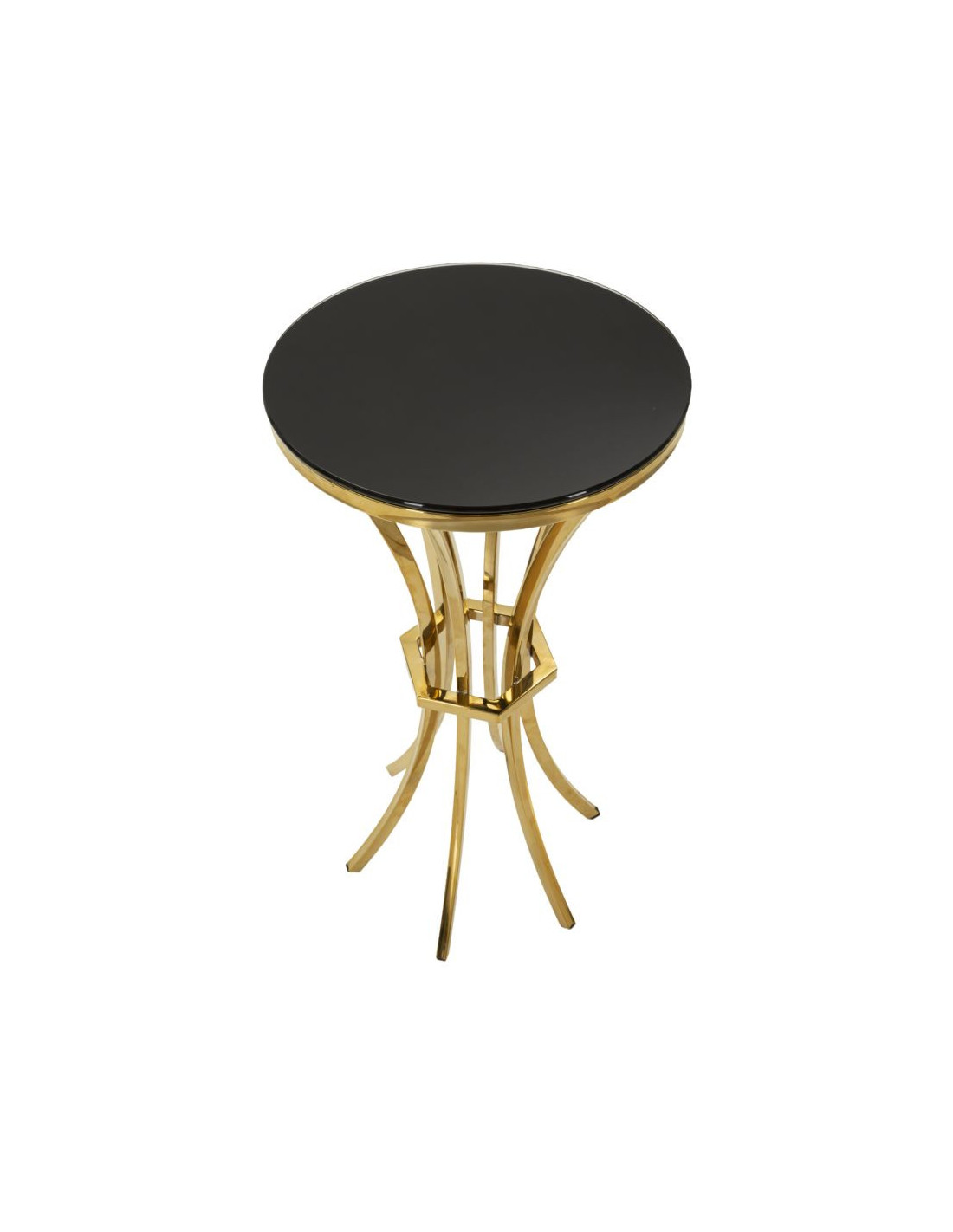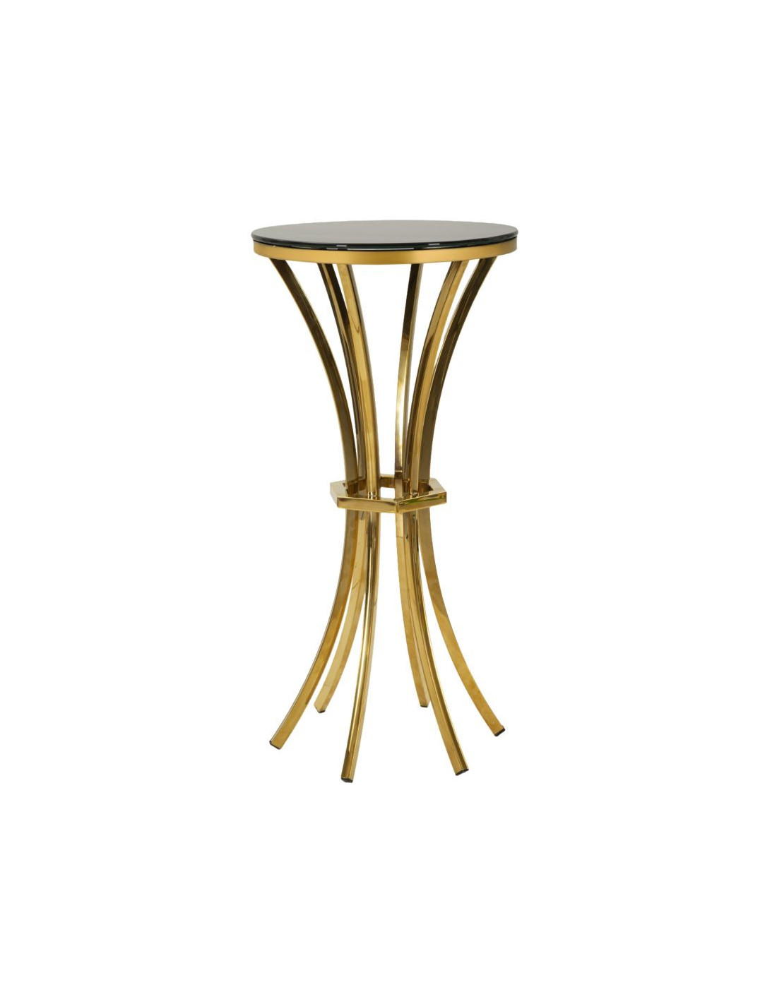 Sellette haute moderne chic Ronde Hauteur 81 cm Verre Noir Métal Doré Shanty